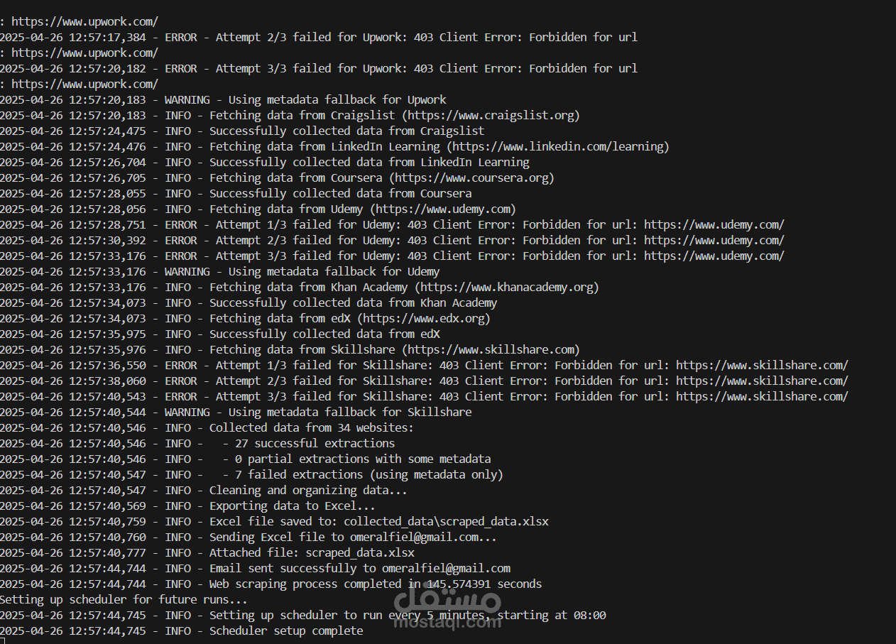 The Web Scraper Tool is an automated application designed to visit a predefined list of websites, collect specific data, and save it into an Excel (XLS) file. The tool is capable of handling different website structures and organizes the collected data into a structured format. It also includes features for scheduling regular scraping sessions and sending email notifications with the results.