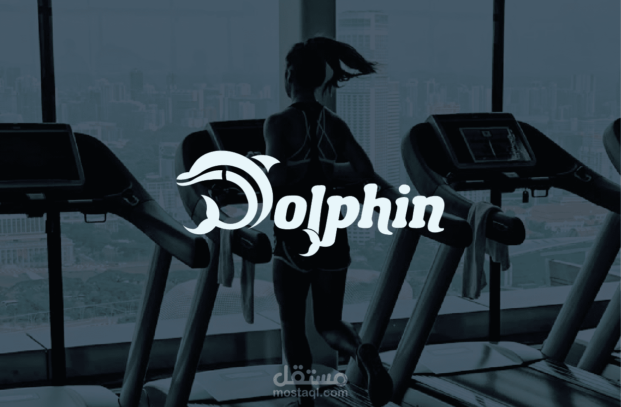 شعار تخيولي مزج بين كلمة وحيوان الدولفين لصالة رياضية