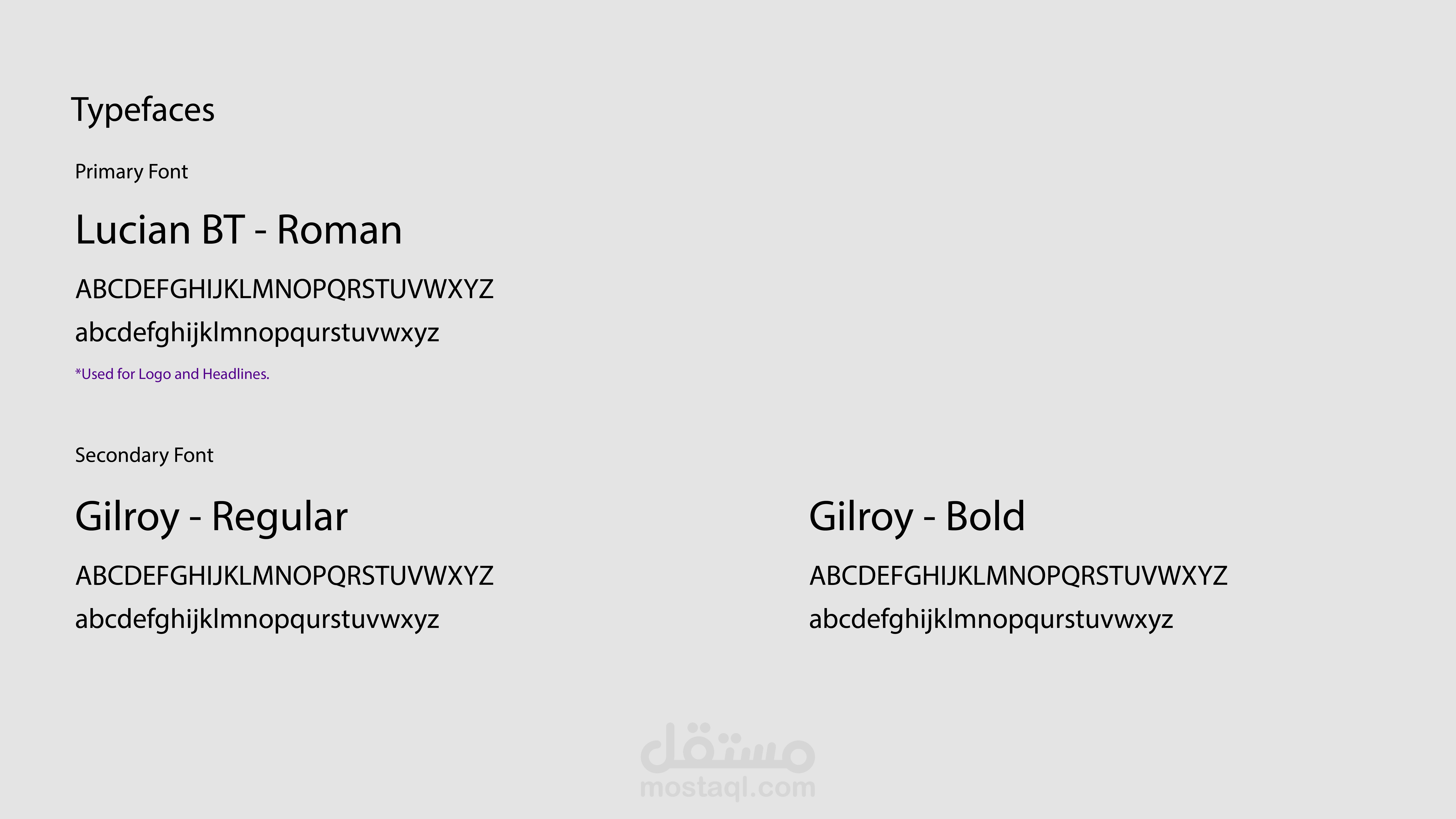 الخطوط: تم اعتماد خطوط حديثة وواضحة لدعم وضوح الهوية وتسهيل استخدامها في مختلف الوسائط.