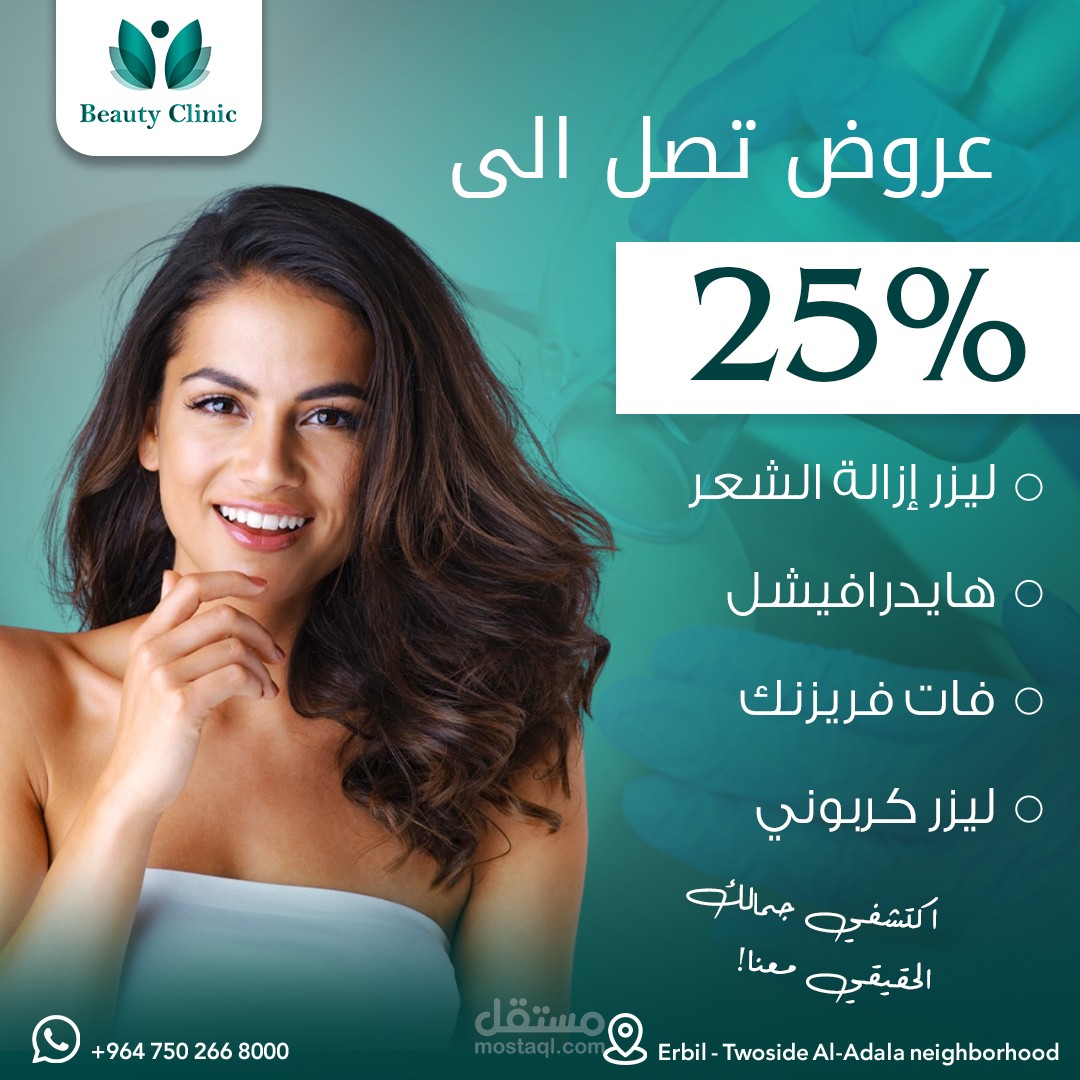 في هذا المشروع، توليت تصميم سلسلة من المنشورات التسويقية الخاصة بعيادة Beauty Clinic المتخصصة في خدمات التجميل والعناية بالبشرة.