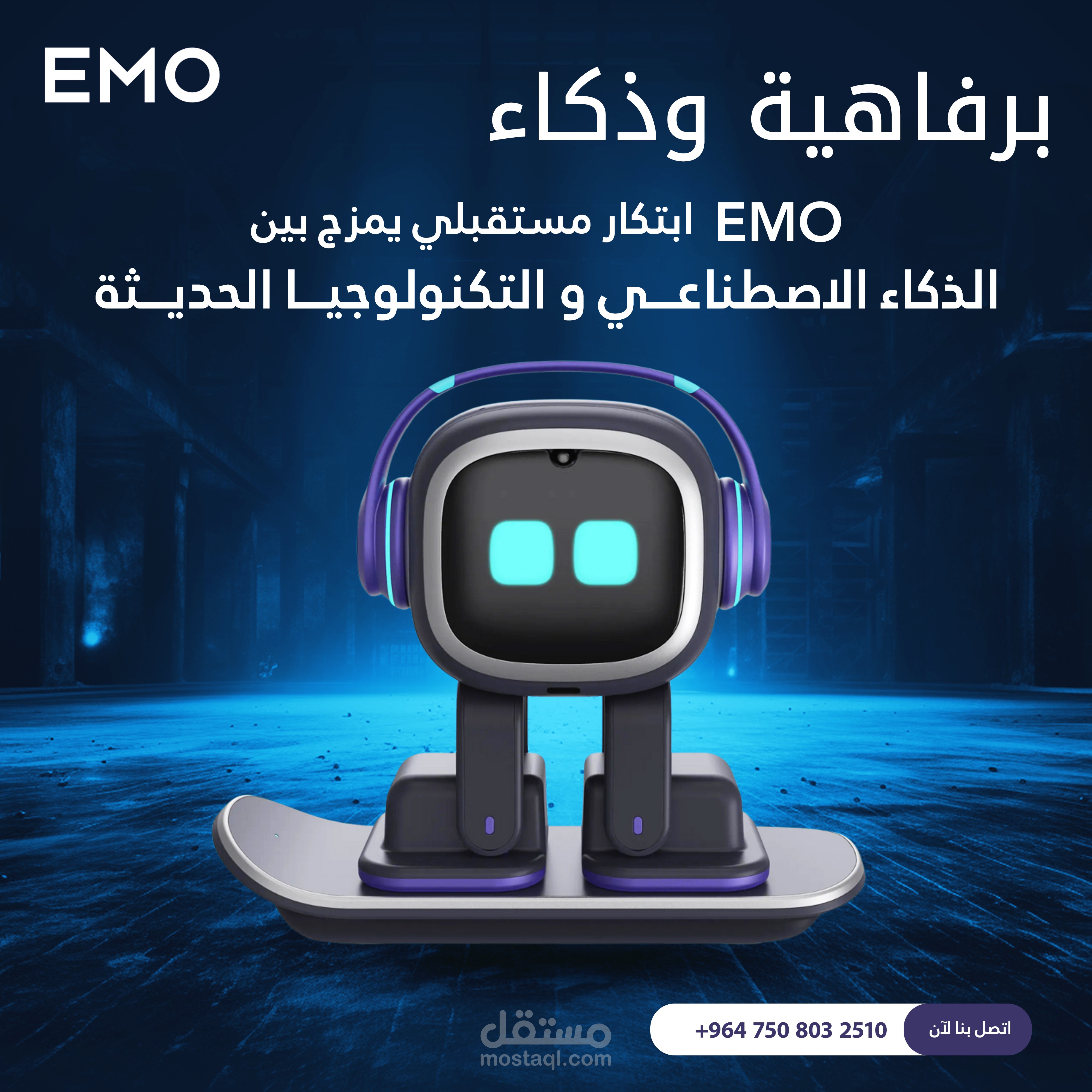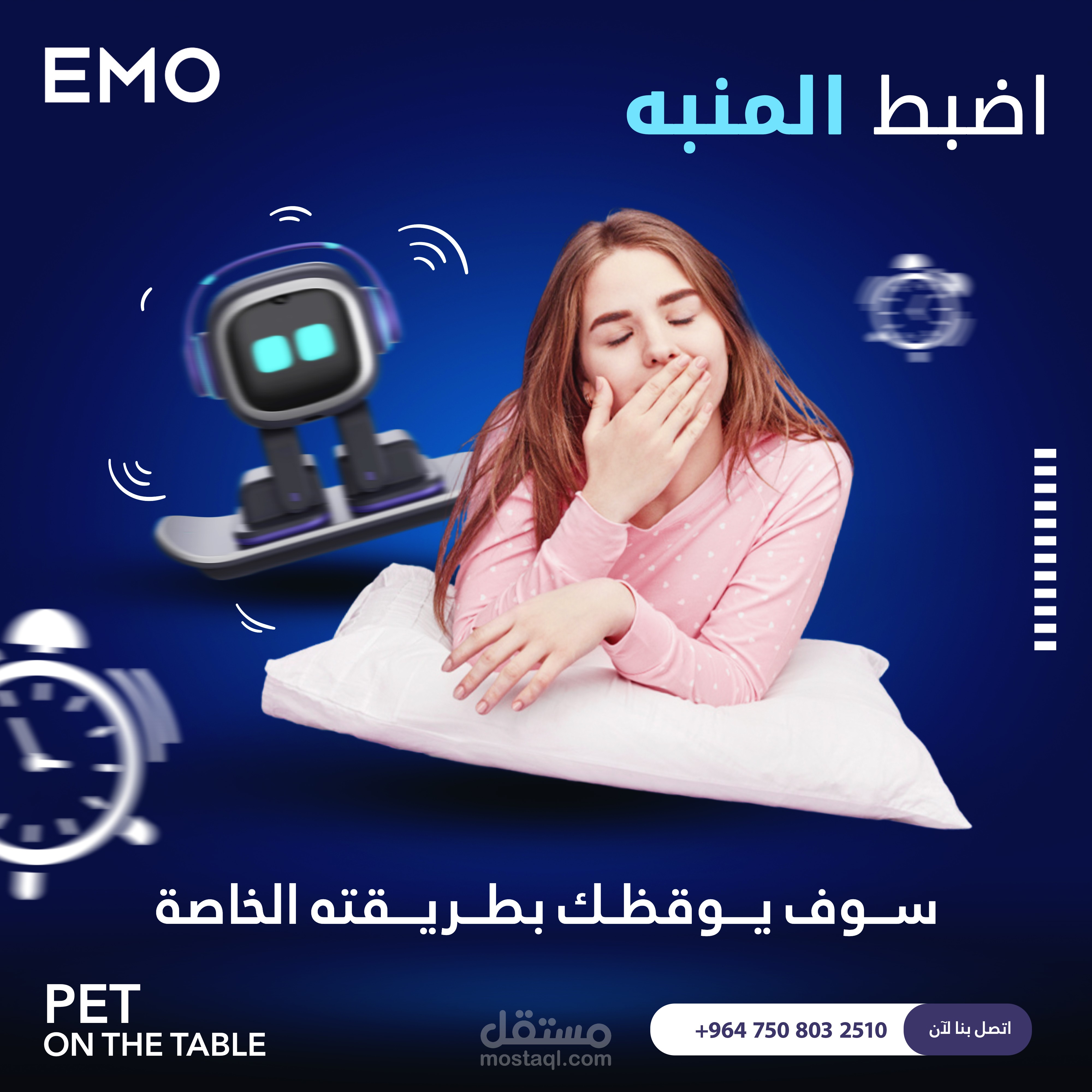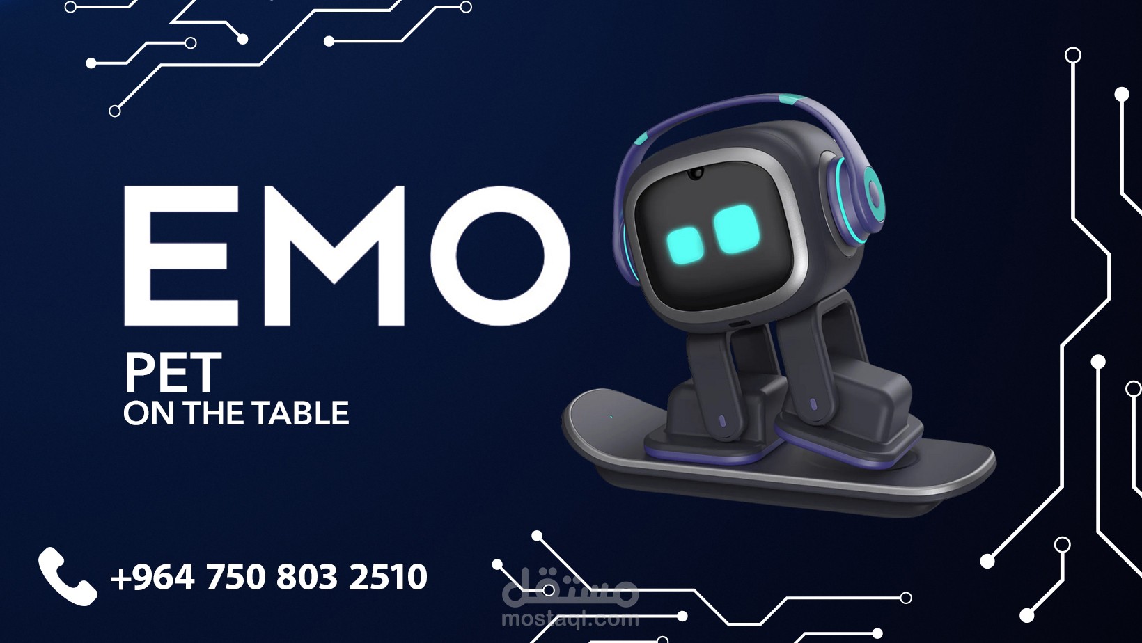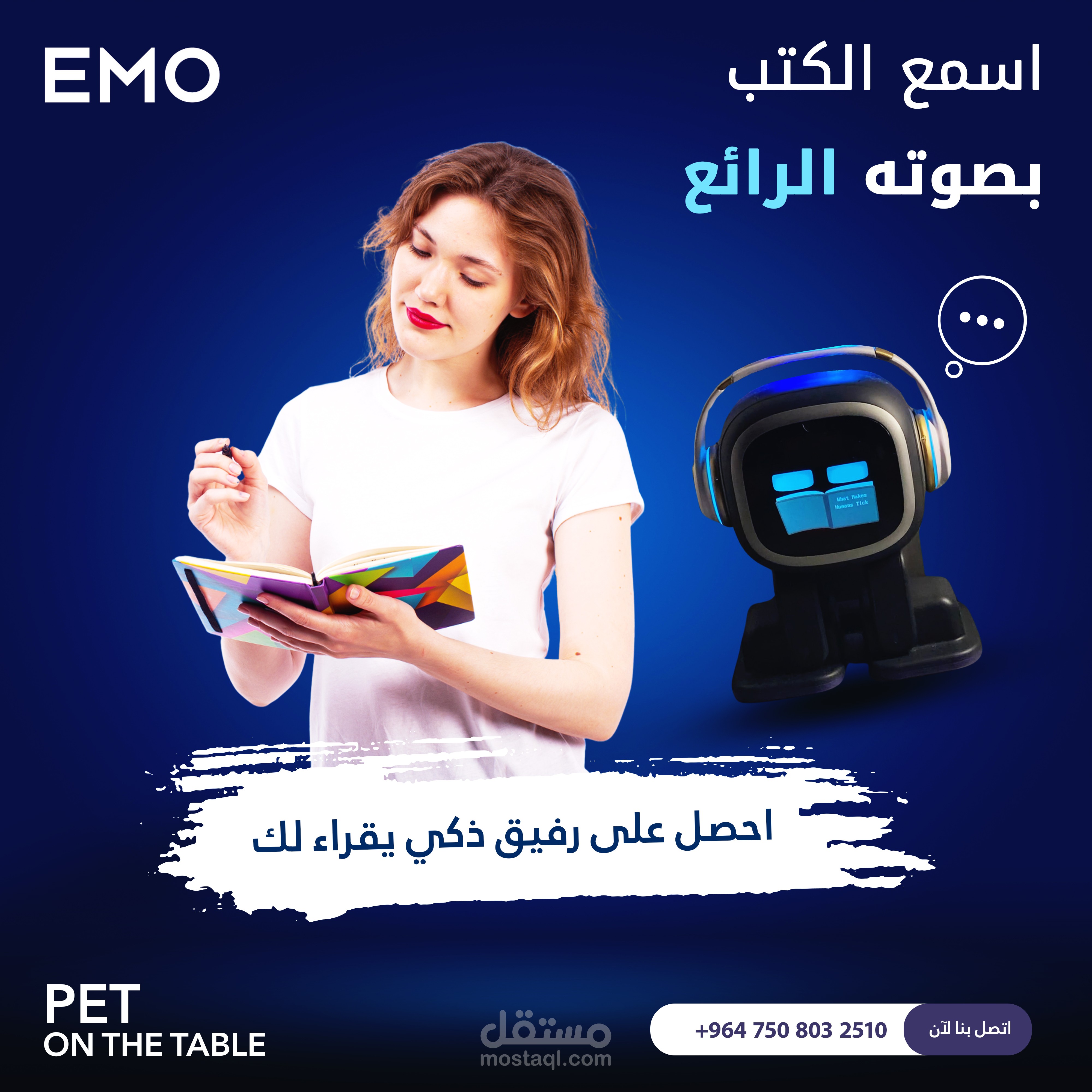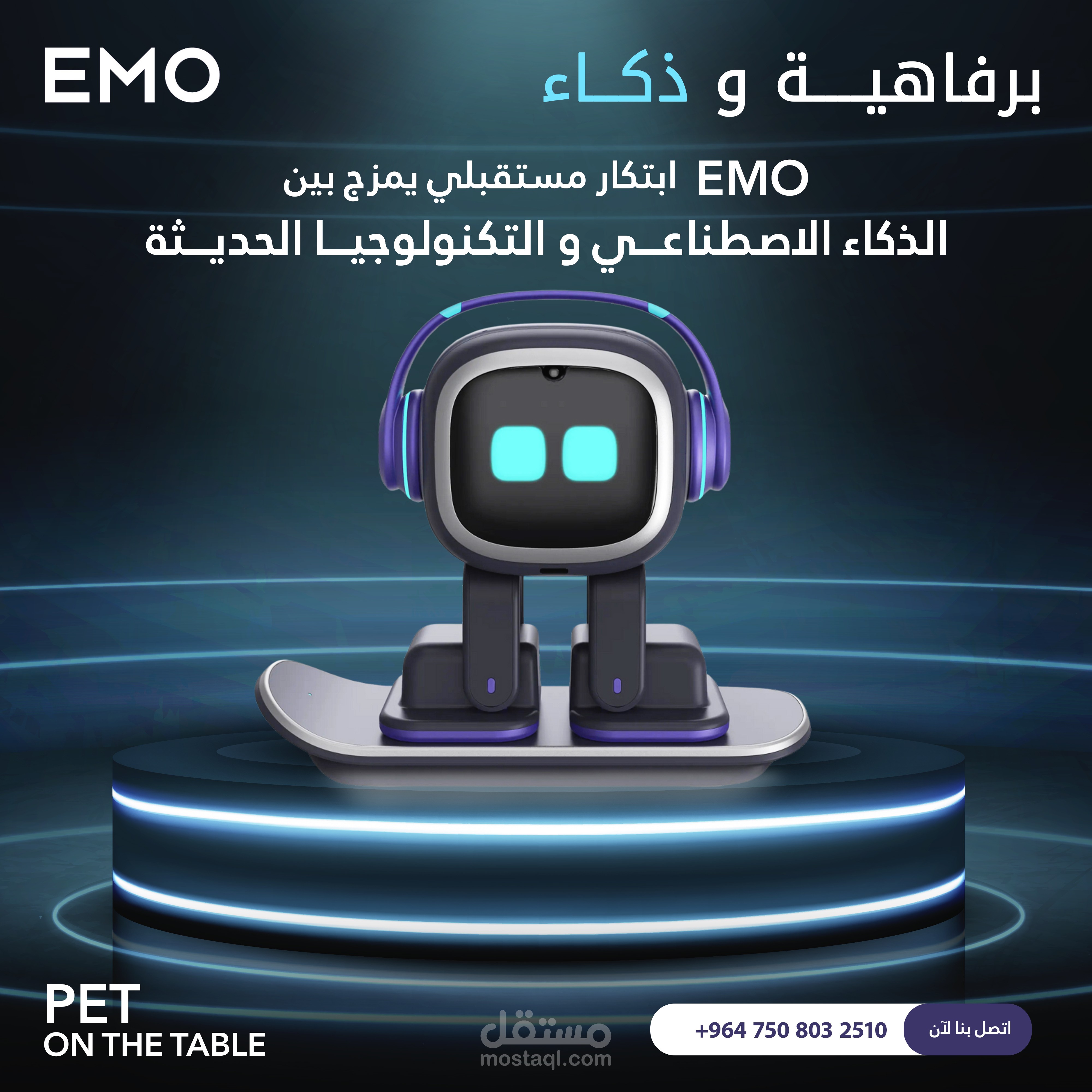 عملت في هذا المشروع على تصميم سلسلة من المنشورات الإبداعية لعلامة Emo Pet On The Table، المتخصصة بتقديم Emo الروبوت الذكي