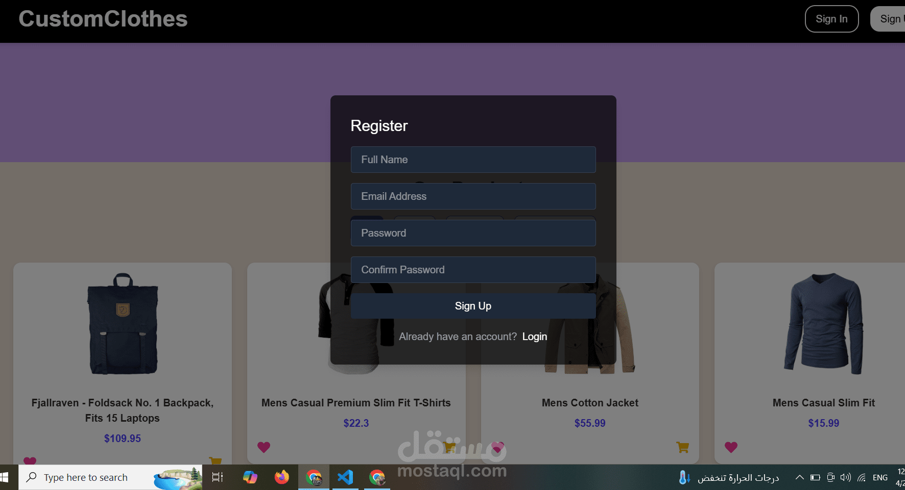 توجد صفحة login .Signup,