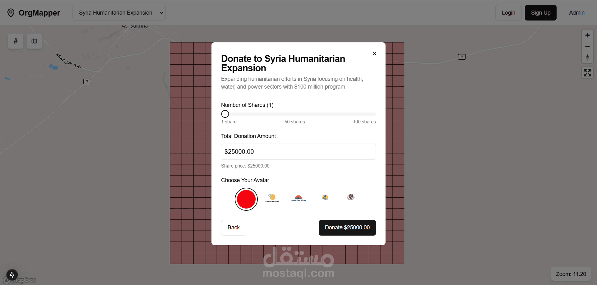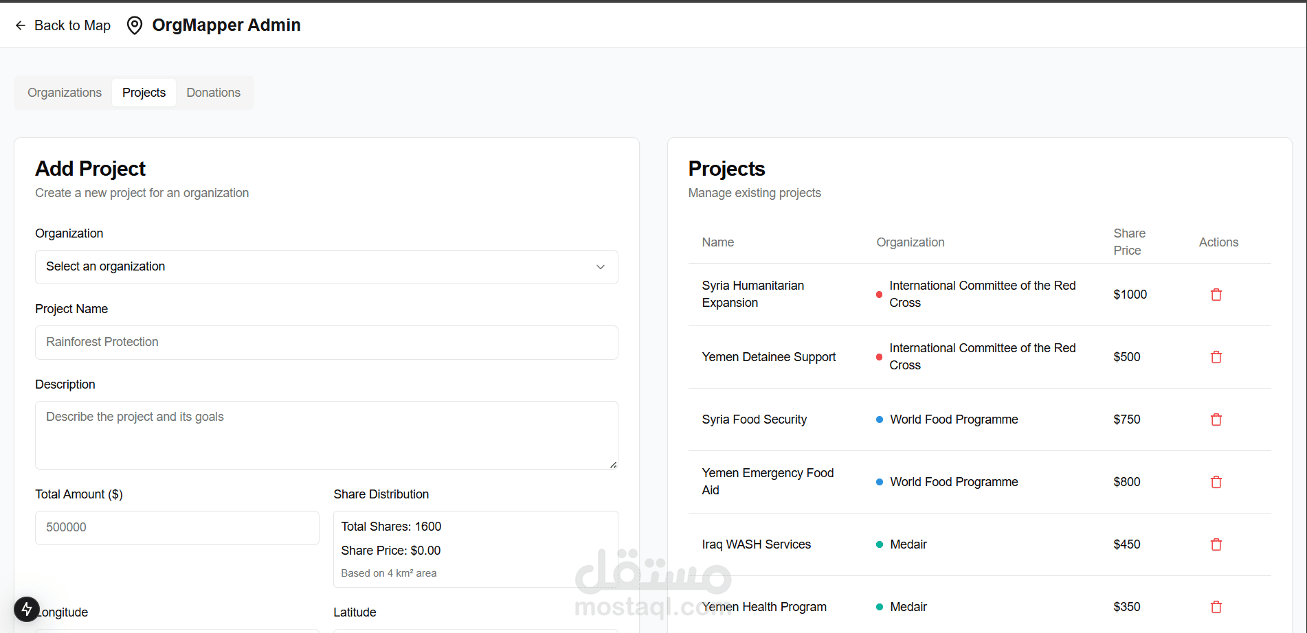 The application uses a dynamic grid system to visualize project areas on the map. I divided the whole world into square cells, and the cells stay the same everywhere, even near the poles.