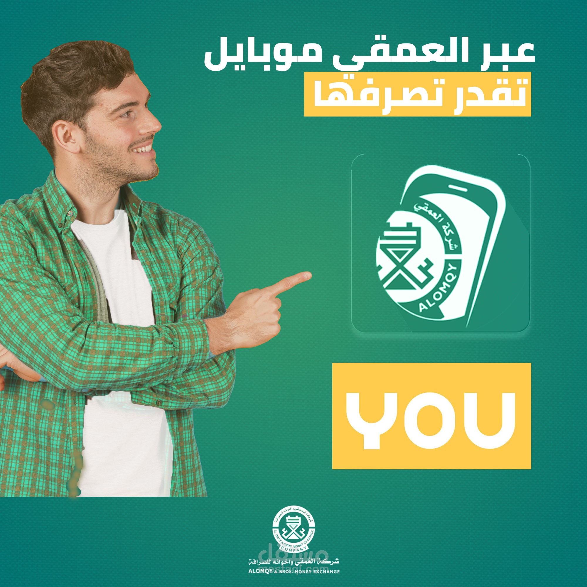 قمت بتصميم إعلان ترويجي إبداعي لصالح شركة "العمقي وإخوانه للصرافة"، حيث ركز التصميم على الدمج بين الصورة المعبرة والرسالة النصية اللافتة لجذب انتباه الجمهور.