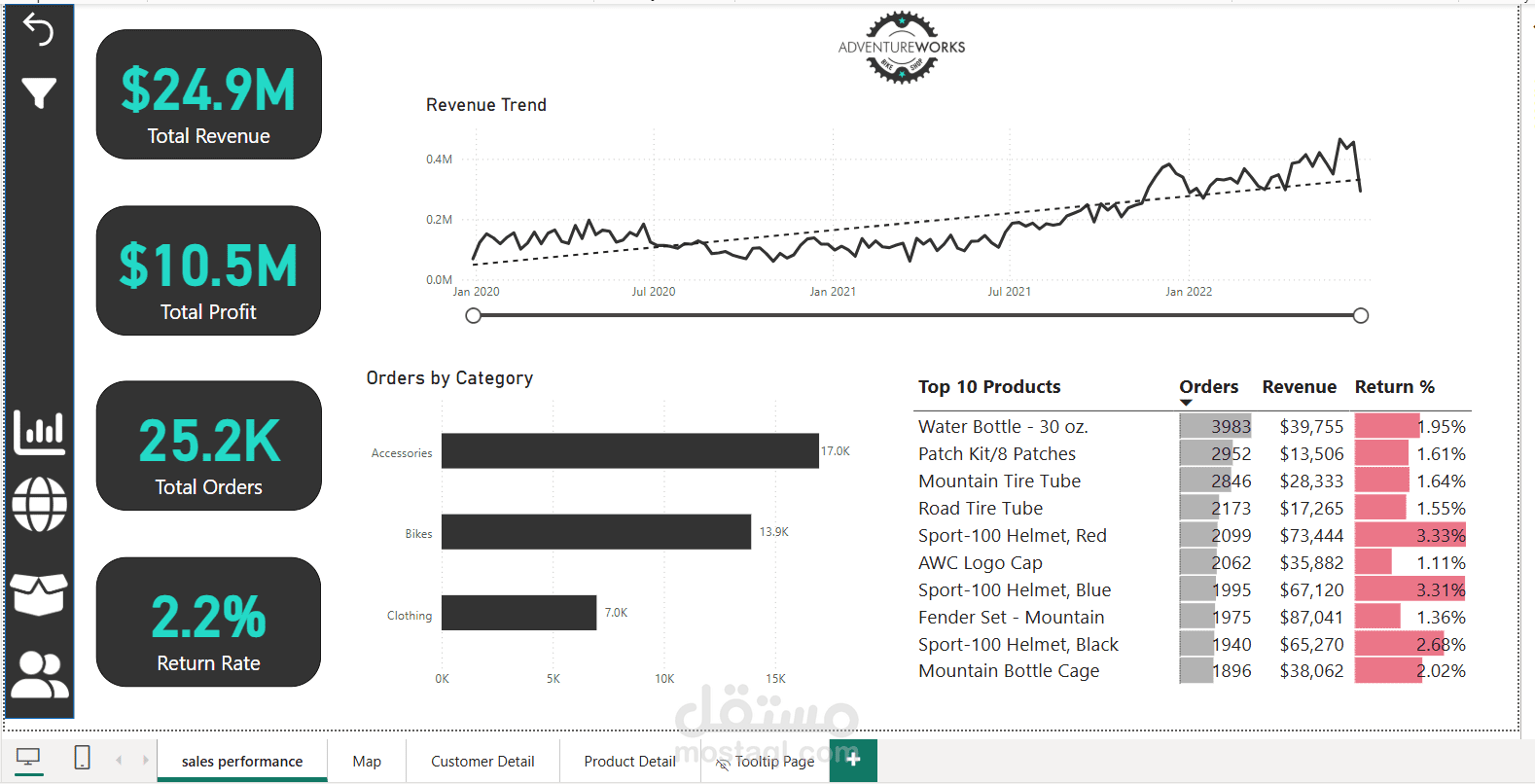 his project focuses on the sales performance, customer behavior, and product trends of AdventureWorks Bike Shop. By examining key metrics such as revenue, customer segmentation, product demand, and regional performance, the goal is to uncover insights that support data-driven decision.