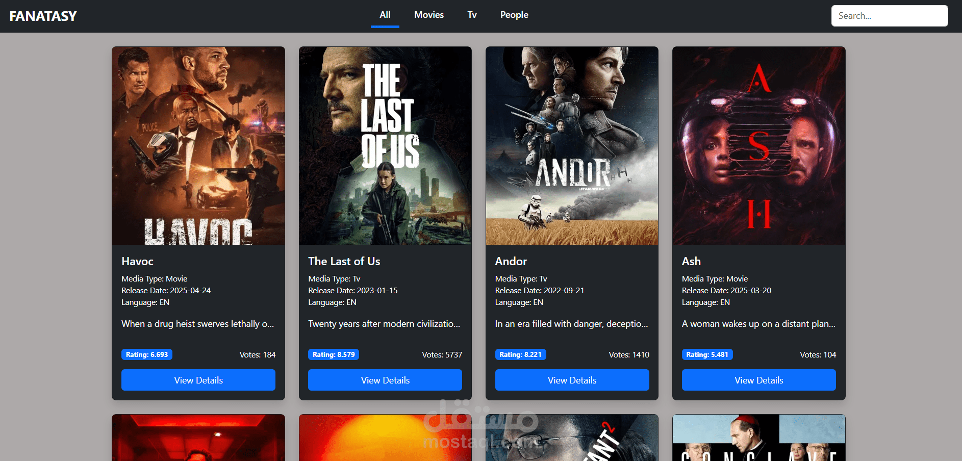 تطبيق ويب مبني باستخدام Angular لعرض قائمة بالأفلام يتم جلبها من واجهة برمجة تطبيقات (API) عامة بشكل لحظي. التطبيق يبرز قوة مميزات Angular مثل المكونات (Components)، التوجيه (Routing)، الخدمات (Services)، والتكامل مع TypeScript.
