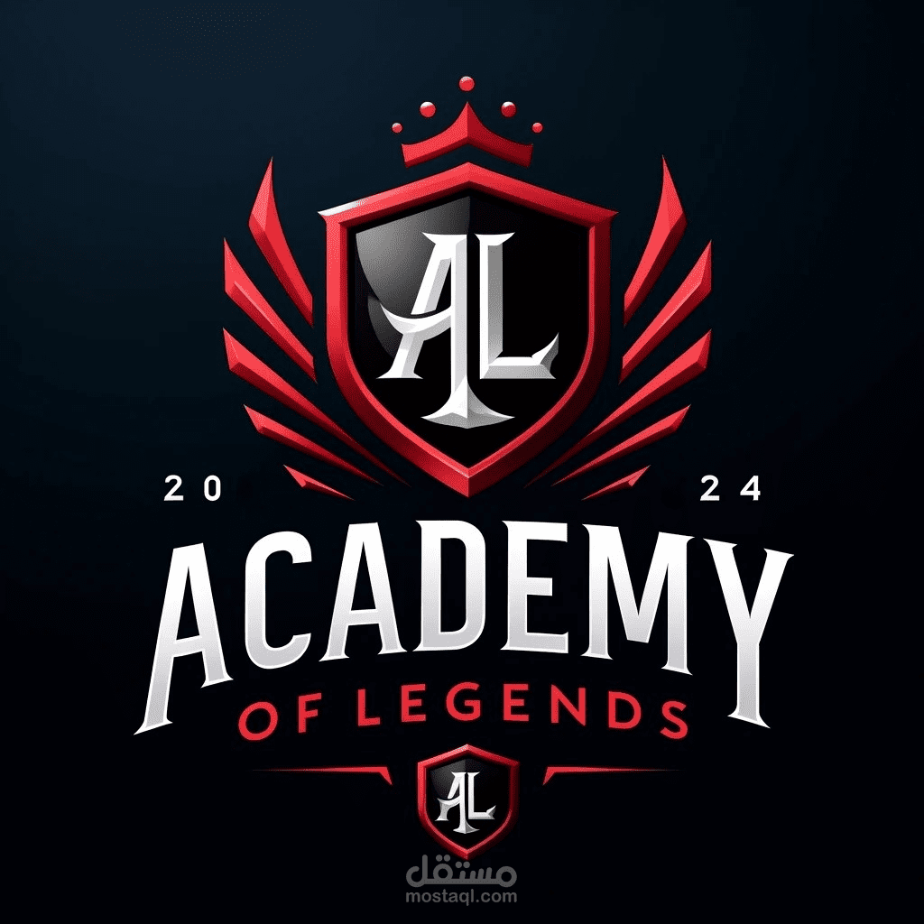 شعار "أكاديمية الأساطير" ينضح بالقوة والطموح نحو القمة! تصميم جريء يتمحور حول درع أنيق باللونين الأسود والأحمر الناري، يتوسطه حرفا "AL" متداخلين بأسلوب ملكي. يزين الدرع تاج شامخ وأجنحة حمراء متوهجة ترمز إلى السرعة والعظمة. يبرز اسم الأكاديمية بخط عصري وقوي، وتحته عبارة "OF LEGENDS" التي تؤكد على هدفها في صناعة الأبطال. يحيط بالشعار رقمان "20" و "24" ربما يشيران إلى سنوات تأسيس أو إنجازات مهمة. هذا الشعار يمثل أكاديمية تسعى لترسيخ أساطير المستقبل في مجالها!