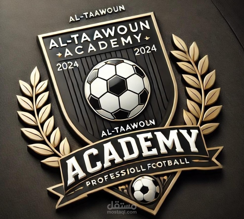 شعار أكاديمية "التعاون" لكرة القدم يجسد الاحترافية والتطلع نحو المستقبل! تصميم أنيق يرتكز على درع عصري يضم كرة قدم كلاسيكية محاطة بإطارات ذهبية فاخرة. يبرز اسم الأكاديمية بوضوح مع نجمة ترمز للتميز، بينما يحيط بالكرة عام 2024، ربما إشارة إلى انطلاقة أو إنجاز مهم. يلتف حول الدرع غصنان ذهبيان يرمزان للنصر والمجد، ويكتمل التصميم بشعار سفلي يؤكد على "كرة القدم الاحترافية". هذا الشعار يعكس أكاديمية تسعى لبناء جيل من اللاعبين المحترفين وتحقيق الإنجازات في عالم كرة القدم.