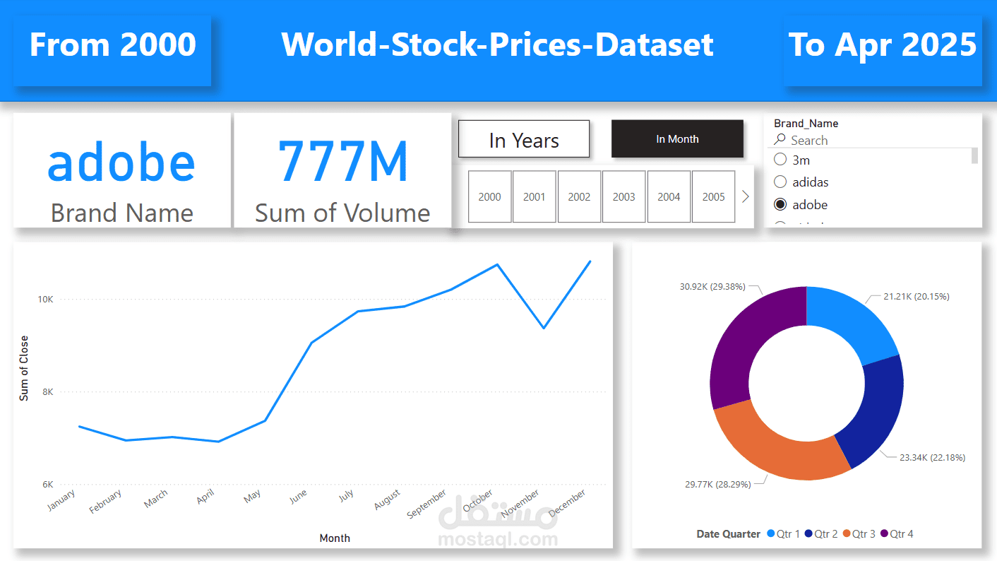 تحليل بيانات الاسهم ل الشركات العالمية من عام 2000 الى ابريل 2025