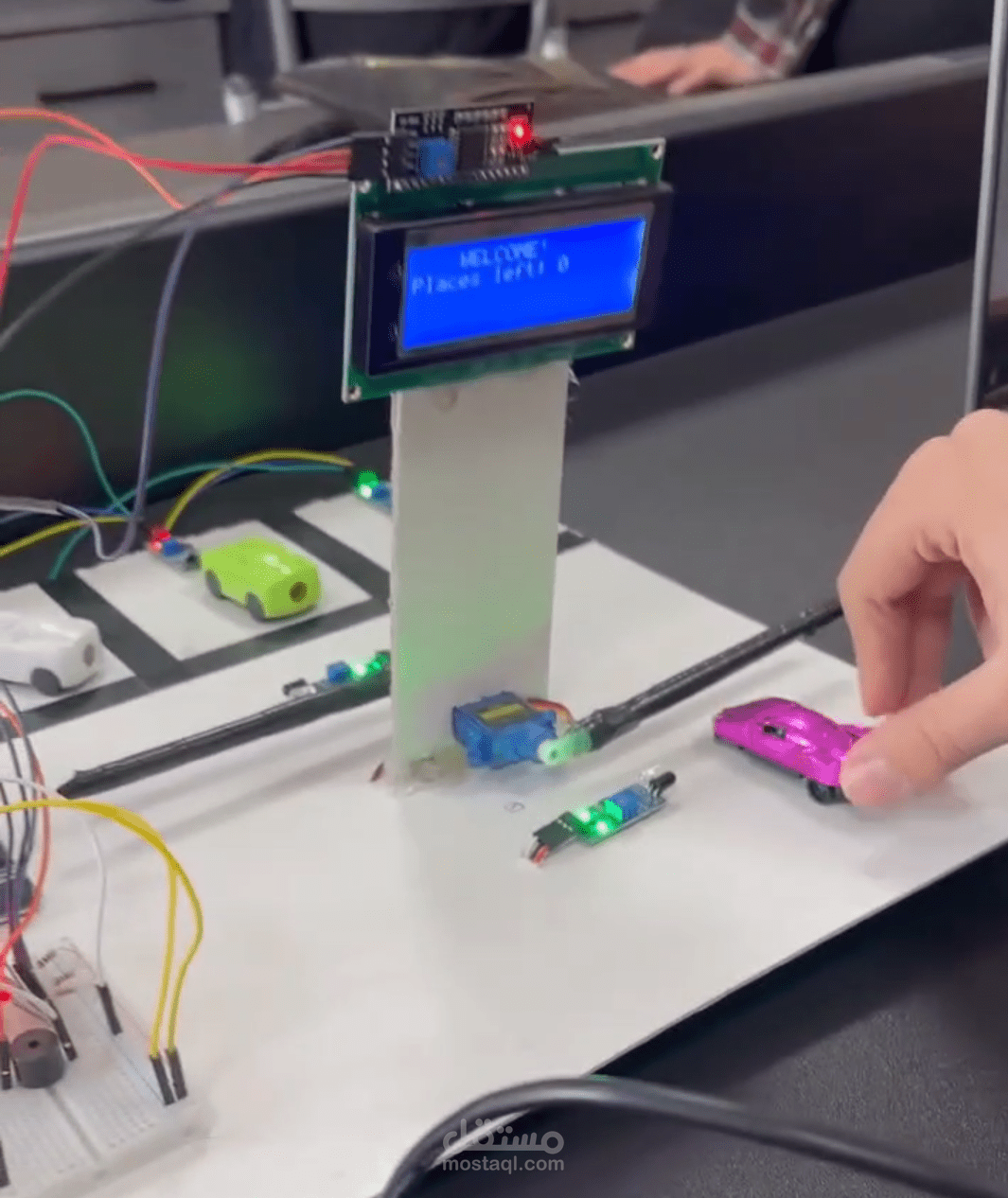 شاشة عرض (LCD أو شاشة 7Segment أو OLED): لعرض عدد المواقف المتوفرة.