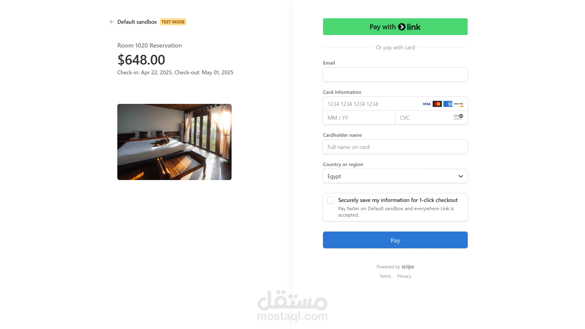 حجز ودفع إلكتروني آمن باستخدام Stripe.