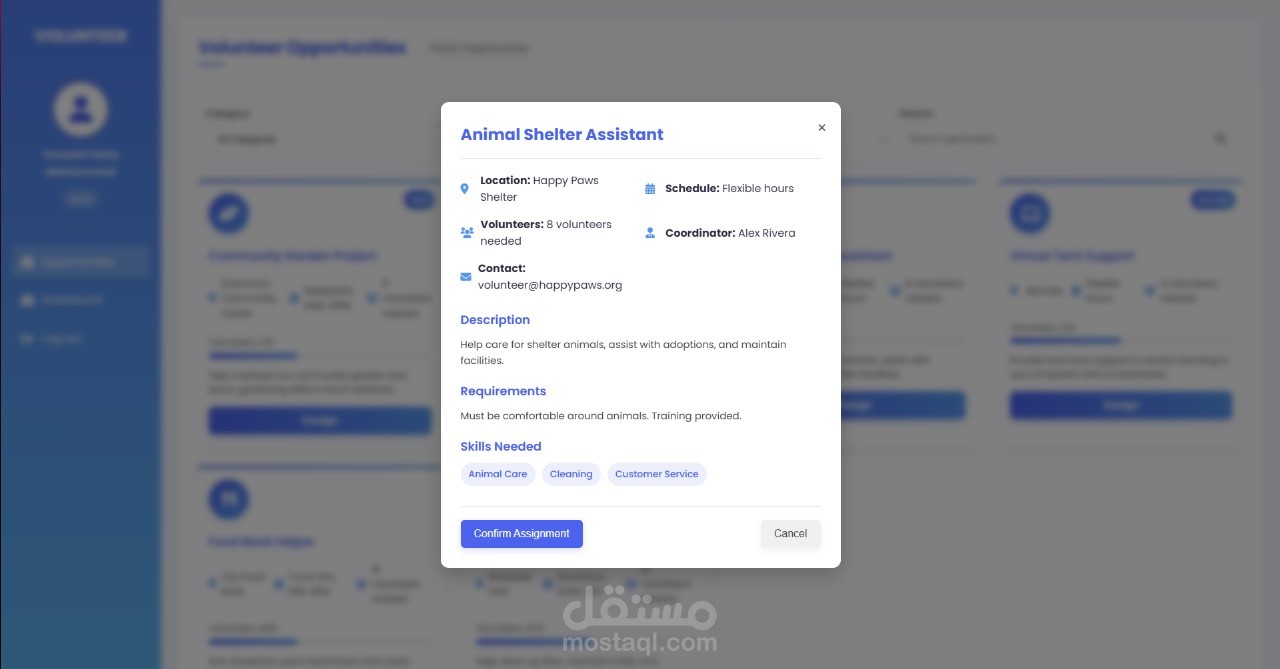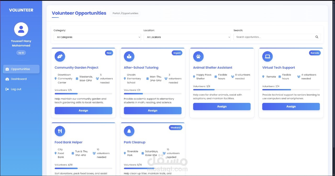6. Assignment System: Simple "Assign" buttons allow volunteers to quickly sign up for opportunities.
