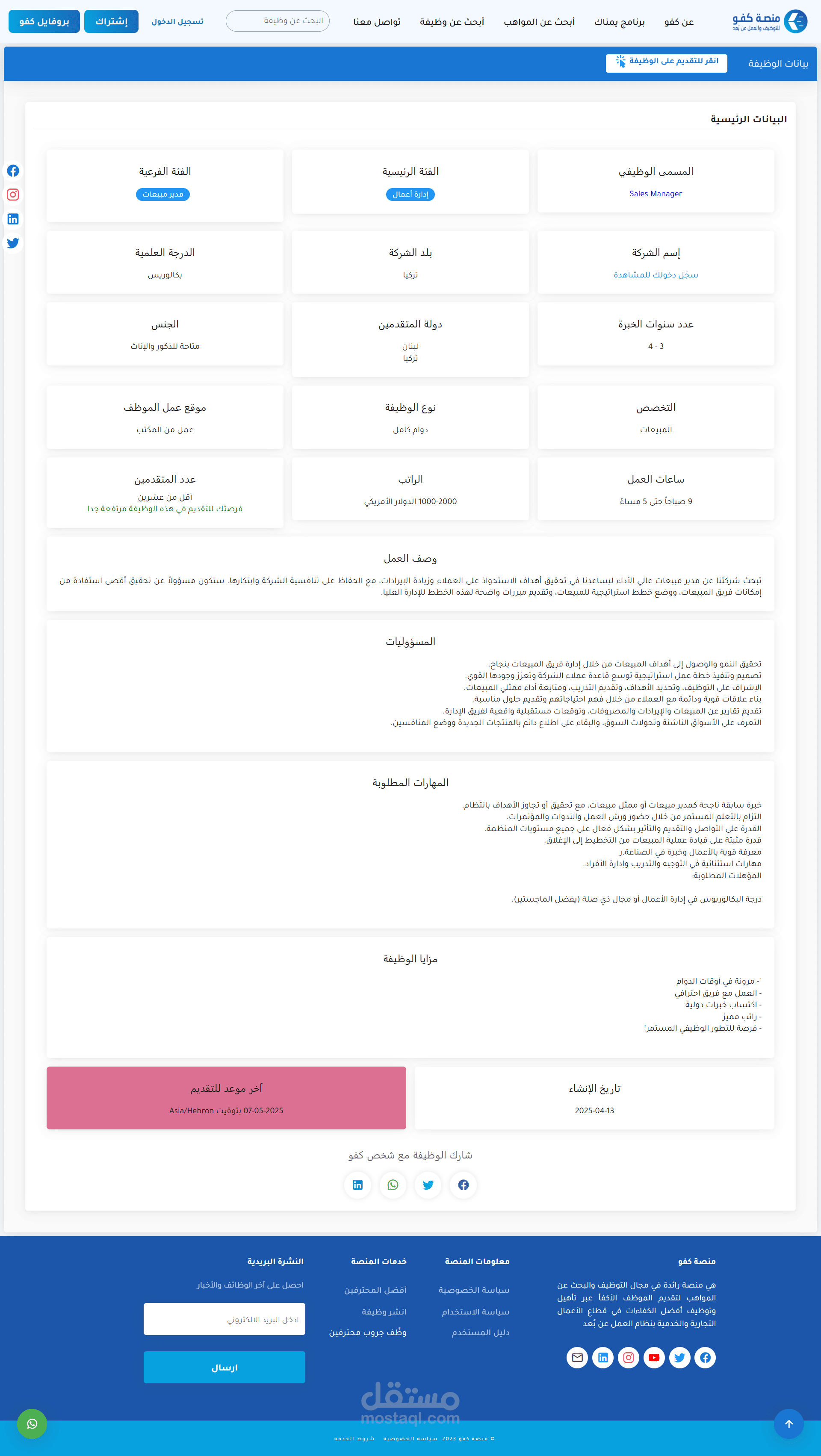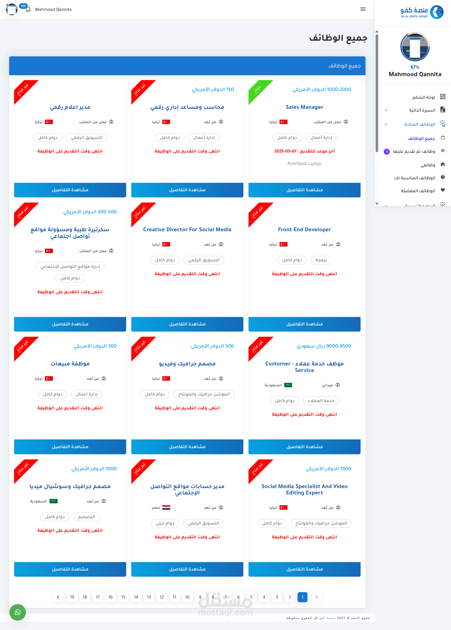 إعلان الوظائف: تنشر الشركات قوائم الوظائف بعد اختيار باقة اشتراك وإتمام الدفع عبر الإنترنت.