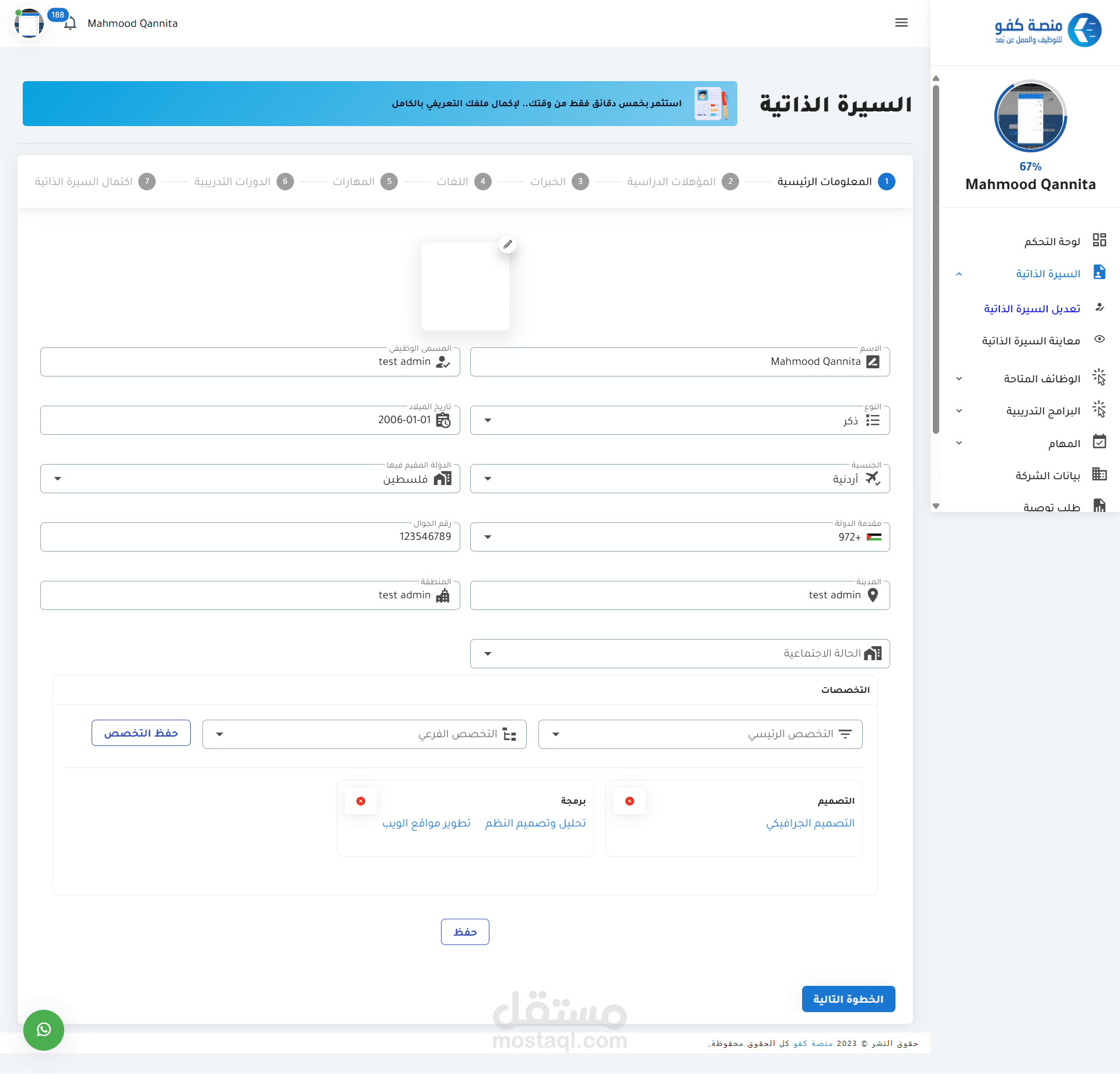 الإشراف على تنفيذ المنصة بالكامل، من تصميم قاعدة البيانات إلى النشر والإطلاق.
