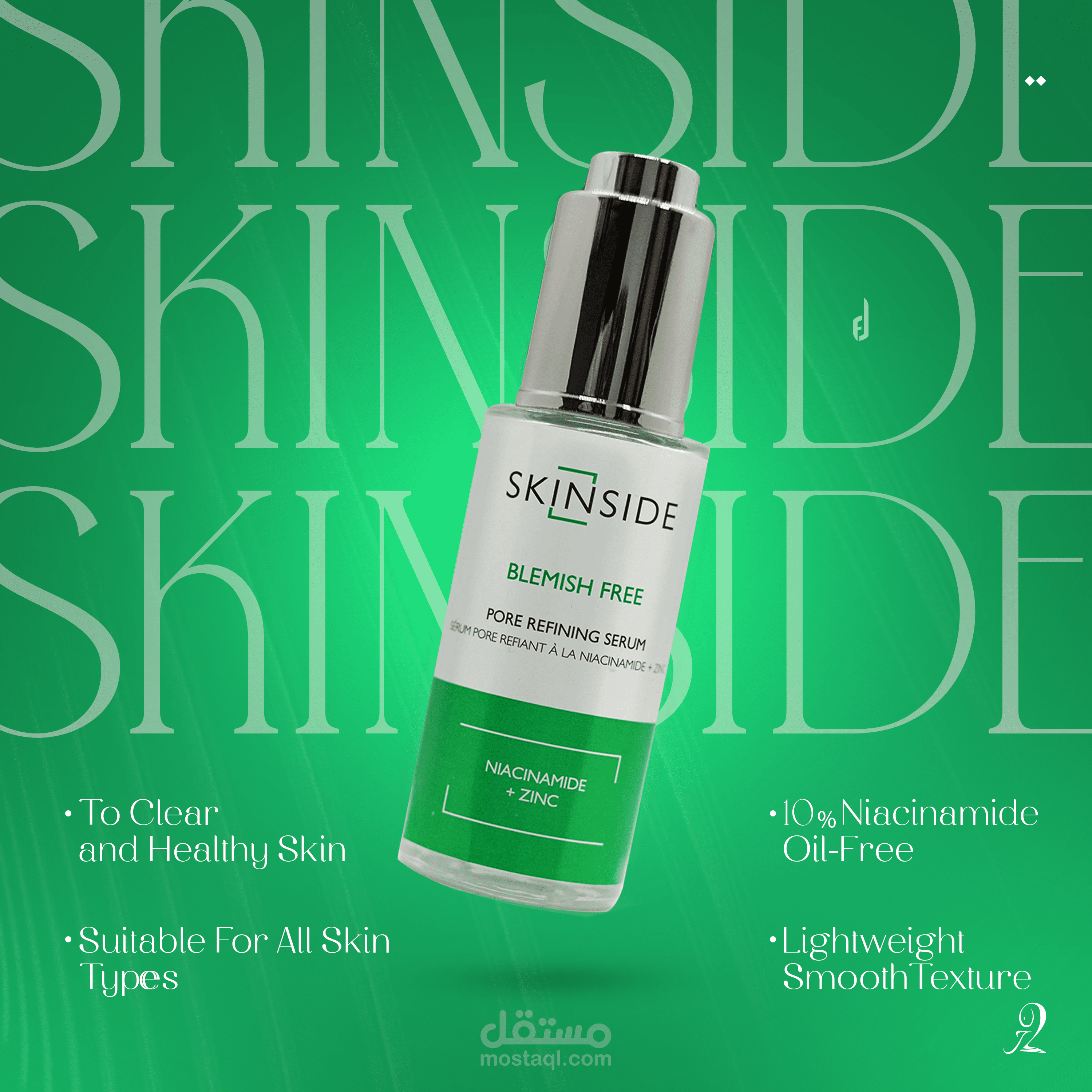 اعتمدت على ألوان وهوية البراند في بناء التصاميم، واهتميت بتفاصيل العناصر لتكون مناسبة لطبيعة كل منتج، سواء في العناية بالبشرة أو التجميل، مع الحفاظ على خط بصري موحد يعكس احترافية Skinside.