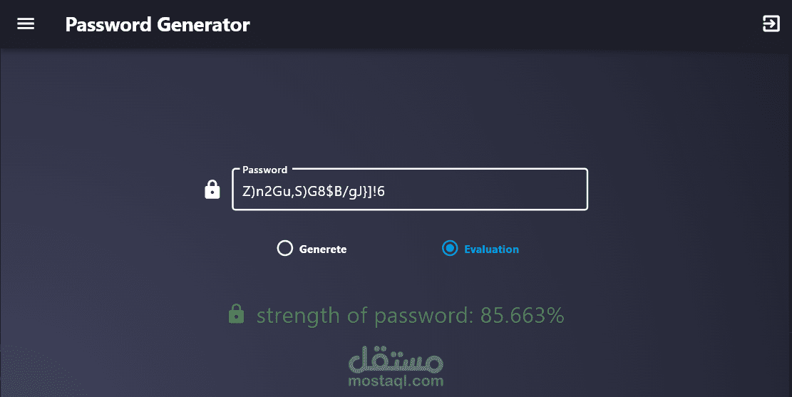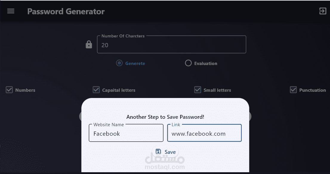 تطبيق لتوليد كلمات مرور قوية وآمنة بناءً على متطلبات المستخدم. يمكن للمستخدم تحديد عدد الأحرف المطلوبة ونوع الأحرف التي يرغب بتضمينها في كلمة المرور، مثل الأحرف الكبيرة، الأحرف الصغيرة، الأرقام، والرموز الخاصة.