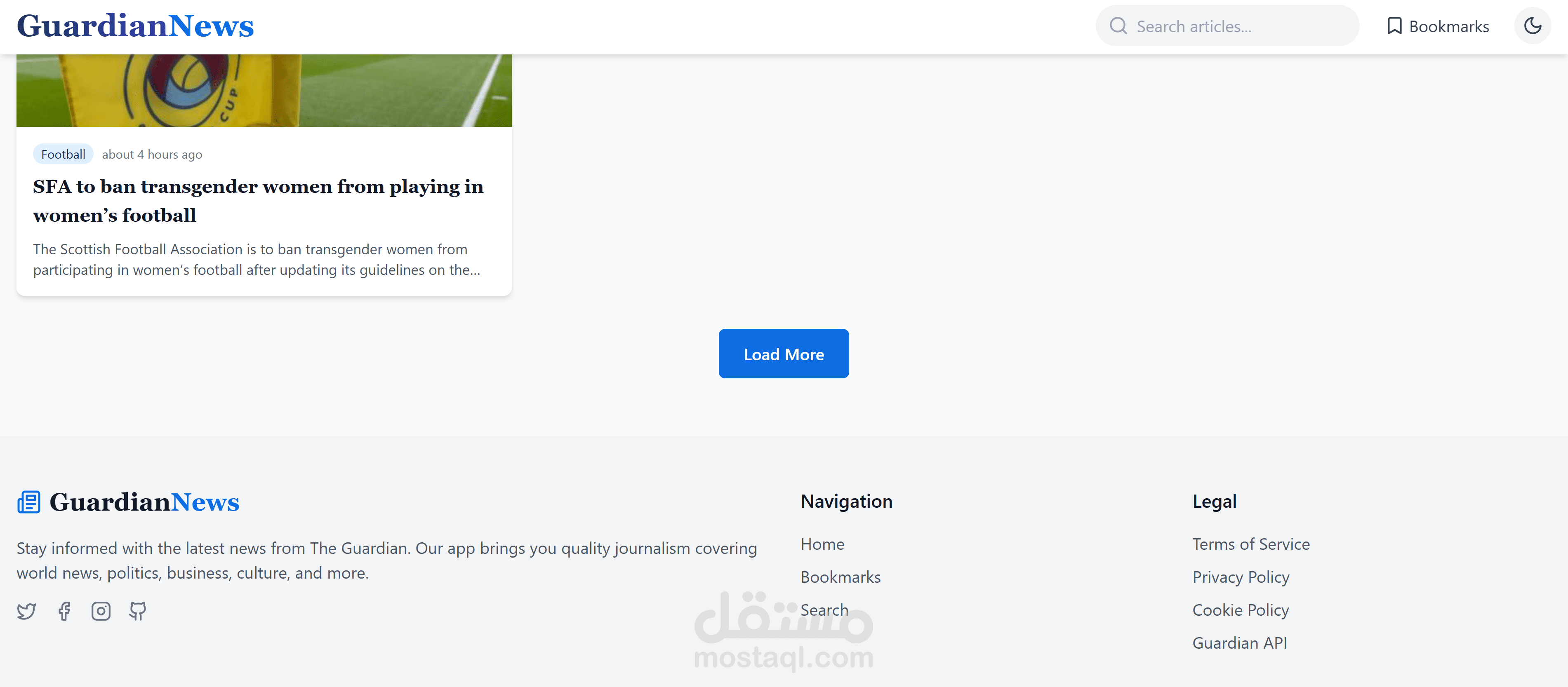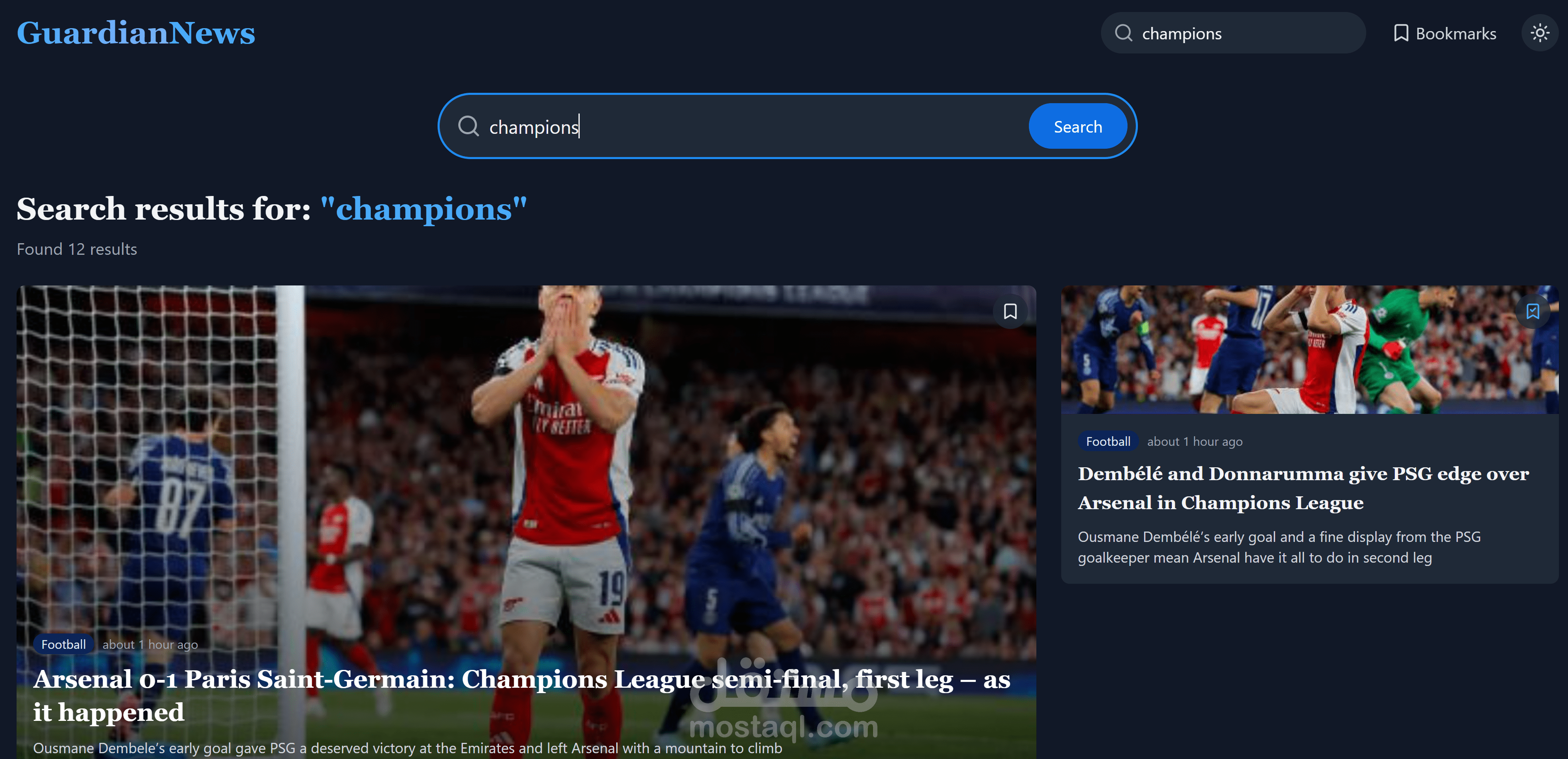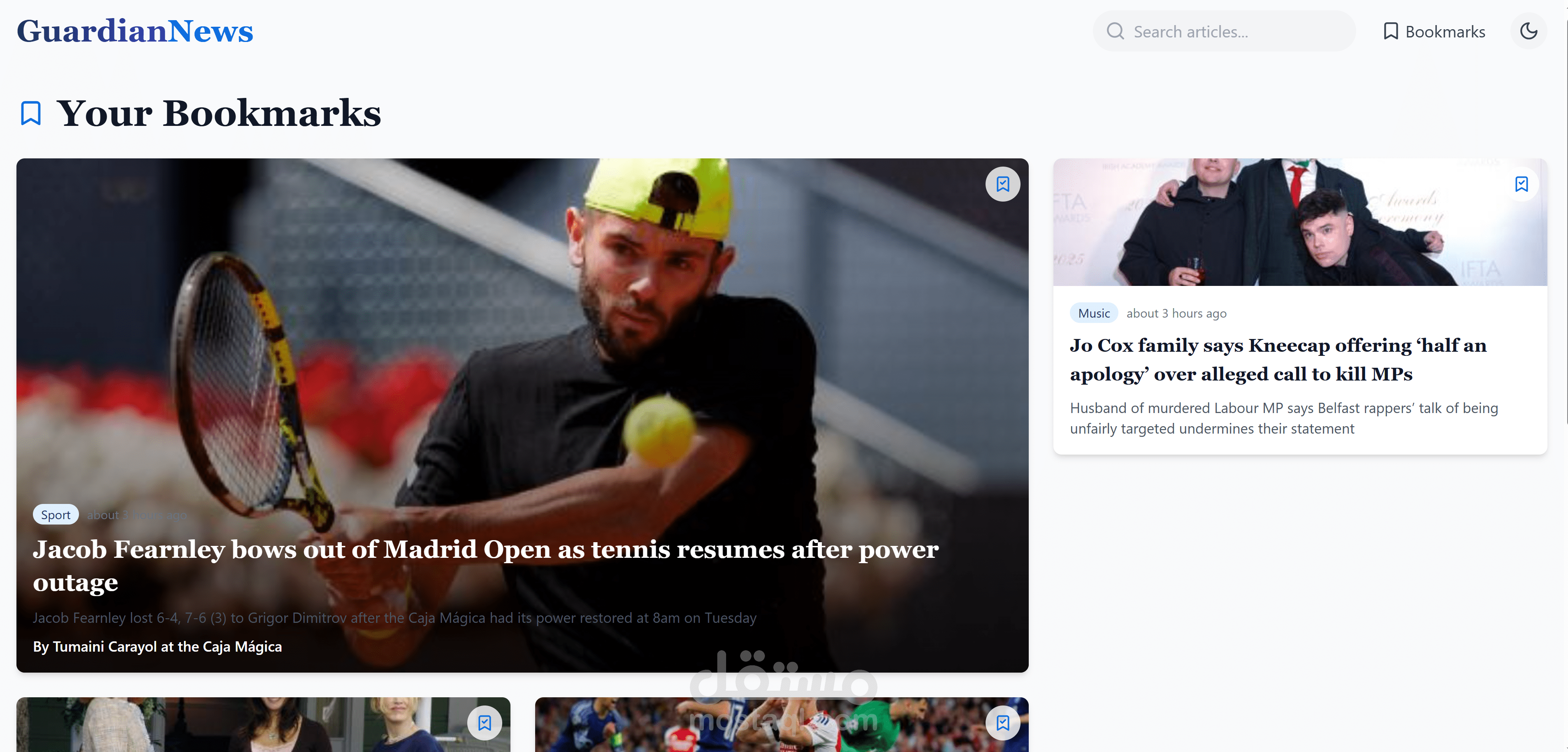 تطبيق إخباري متميز مبني باستخدام React و Guardian API