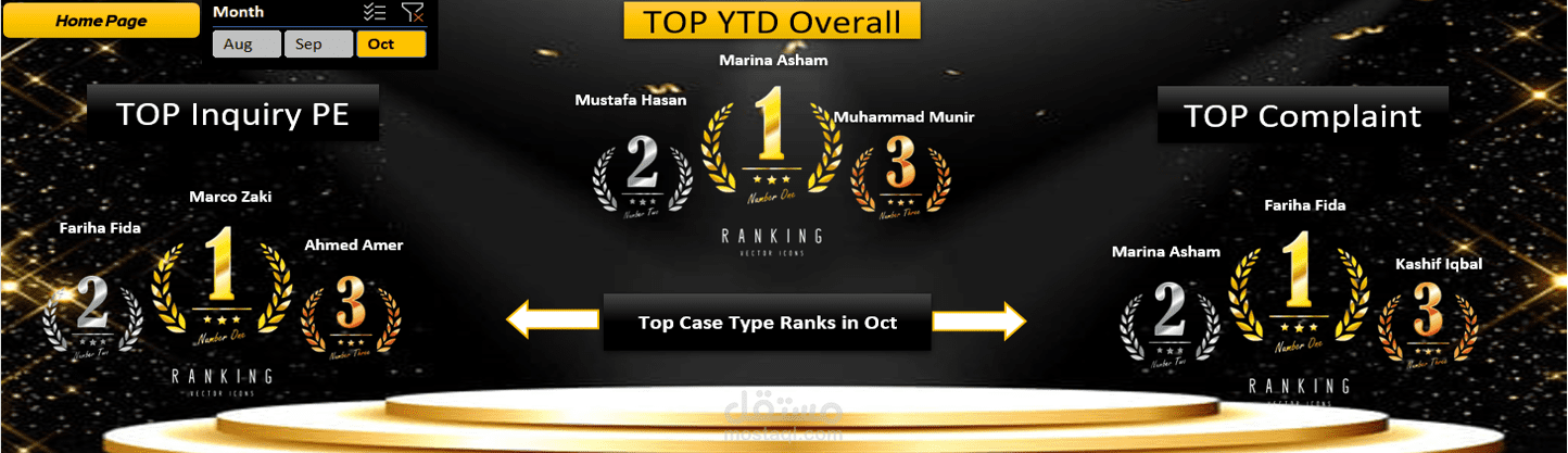 عرض تفاعلي لأفضل الموظفين شهريًا (أكتوبر) وسنويًا (YTD)