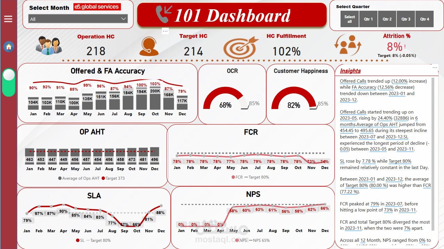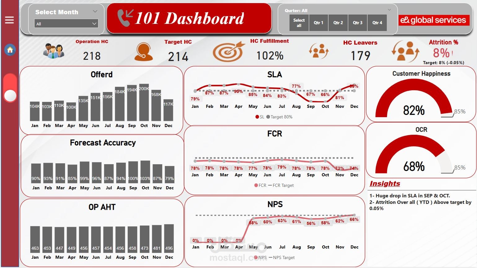 كل المؤشرات دي بتقيس جودة الأداء في الكول سنتر، سواء على مستوى كل قسم أو بشكل عام:
