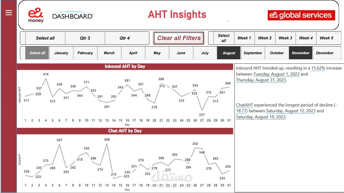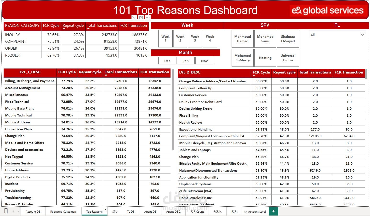 داش بورد لمراقبة أداء الكول سنتر – Etisalat Global Services