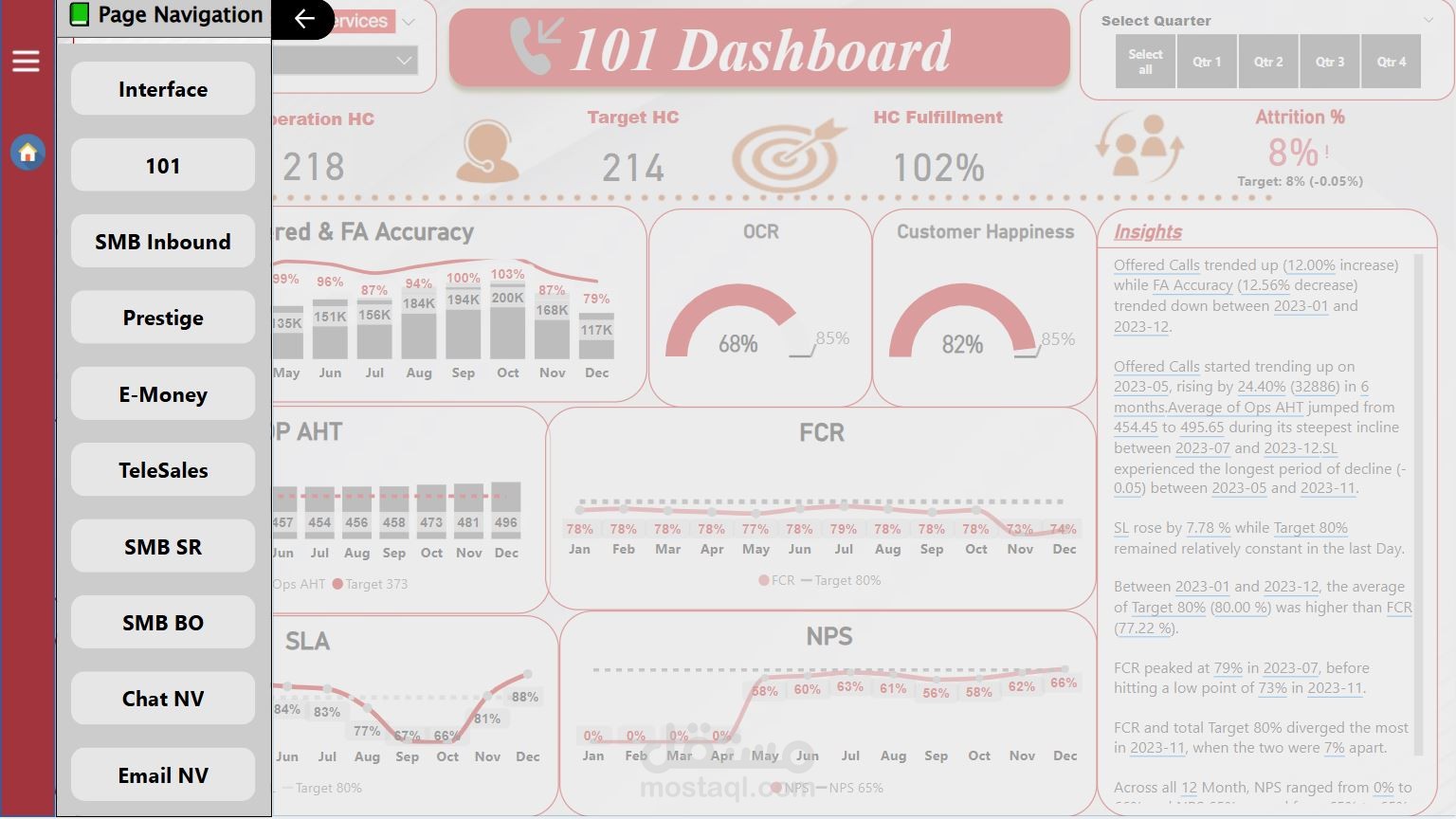 من خلالها، المستخدم يقدر يتنقل بسهولة بين الصفحات المختلفة الخاصة بكل قسم أو مؤشر أداء (Metric).