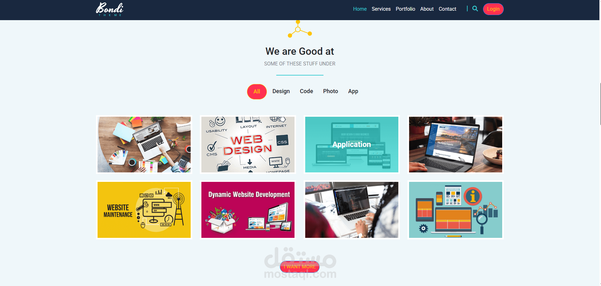 قمت بتصميم وتطوير موقع ويب تعريفي متكامل تحت اسم Bondi، يتميز بتصميم عصري وتفاعلي متوافق مع جميع الأجهزة باستخدام أحدث تقنيات الويب (HTML5, CSS3, JavaScript, Bootstrap 5). يهدف الموقع إلى تقديم الخدمات بشكل أنيق واحترافي، ويضم عدة أقسام رئيسية تُبرز نقاط القوة والهوية البصرية.