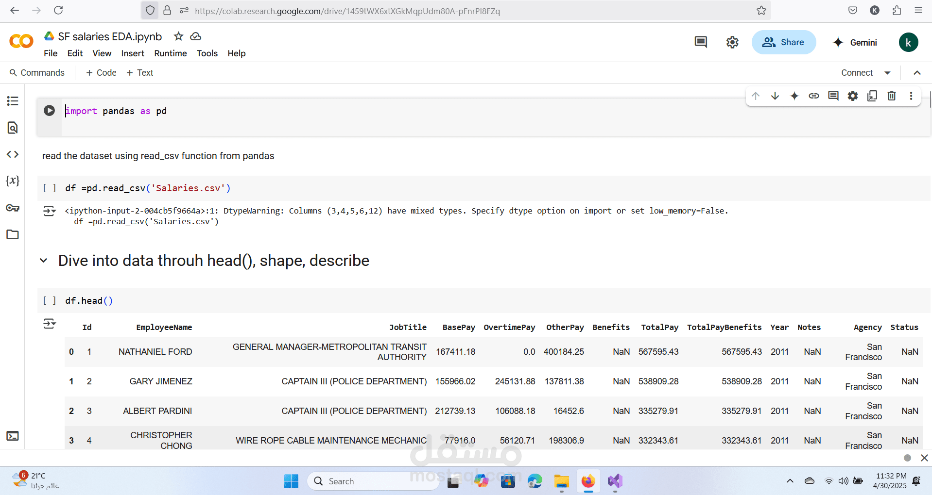 تنظيف و تحليل بيانات عن رواتب فى ولاية San Francisco الامريكيه
