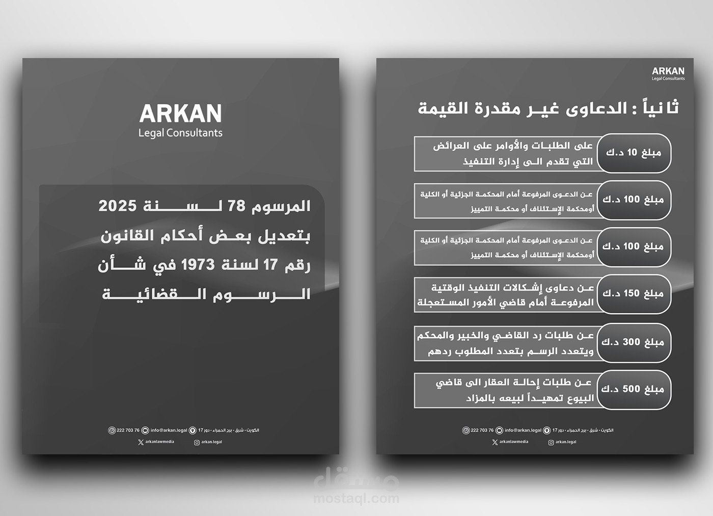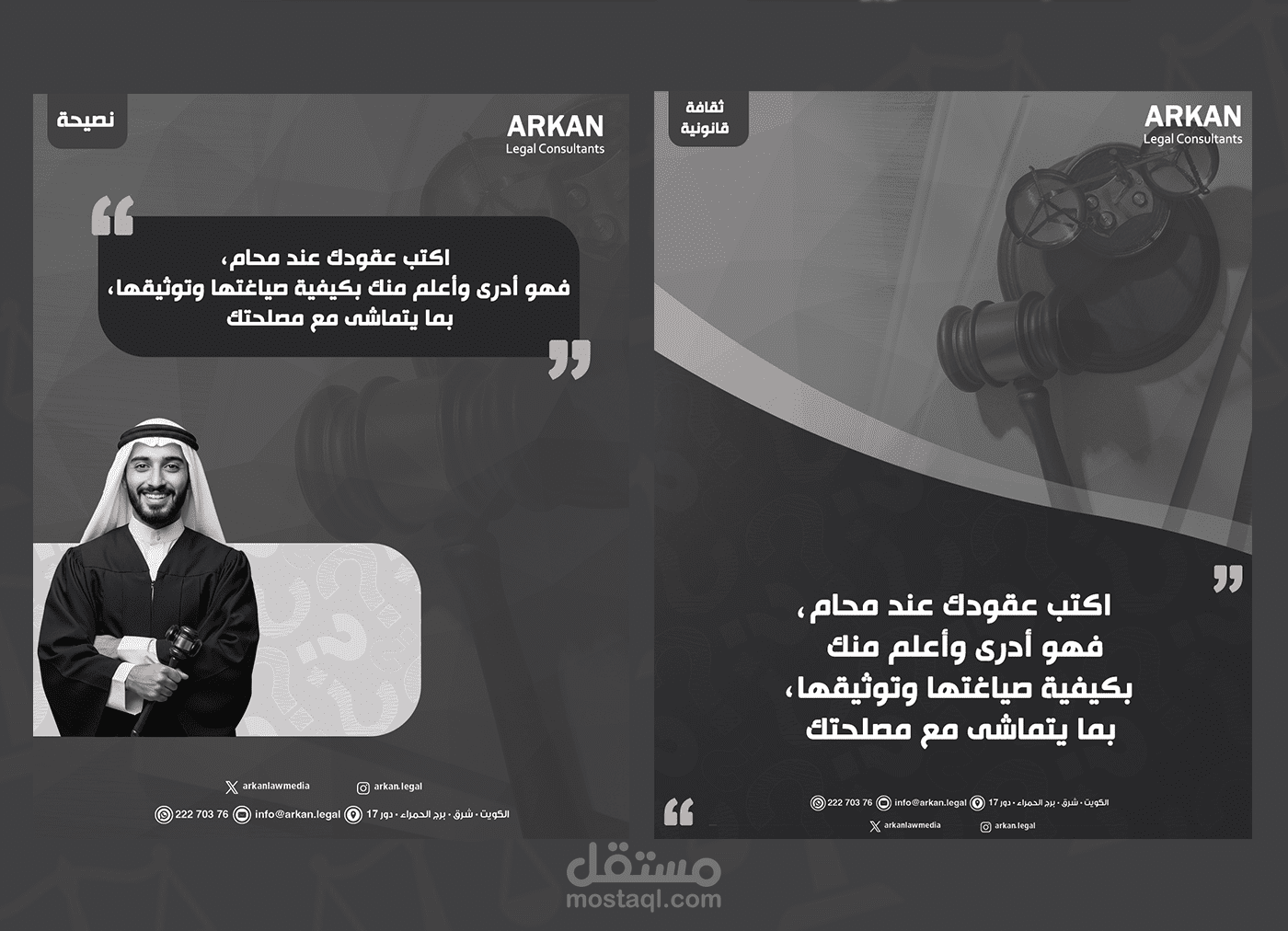 تصميمات قوالب سوشيال ميديا لصالح شركة محاماة في الكويت