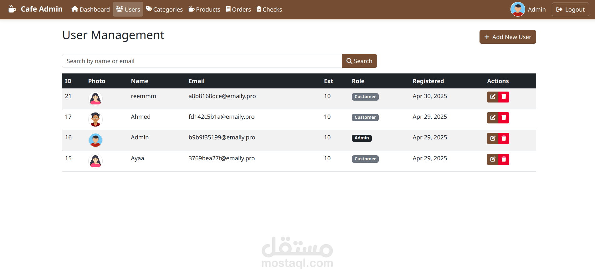 واجهة للمسؤول (Admin) وواجهة للمستخدم (User).