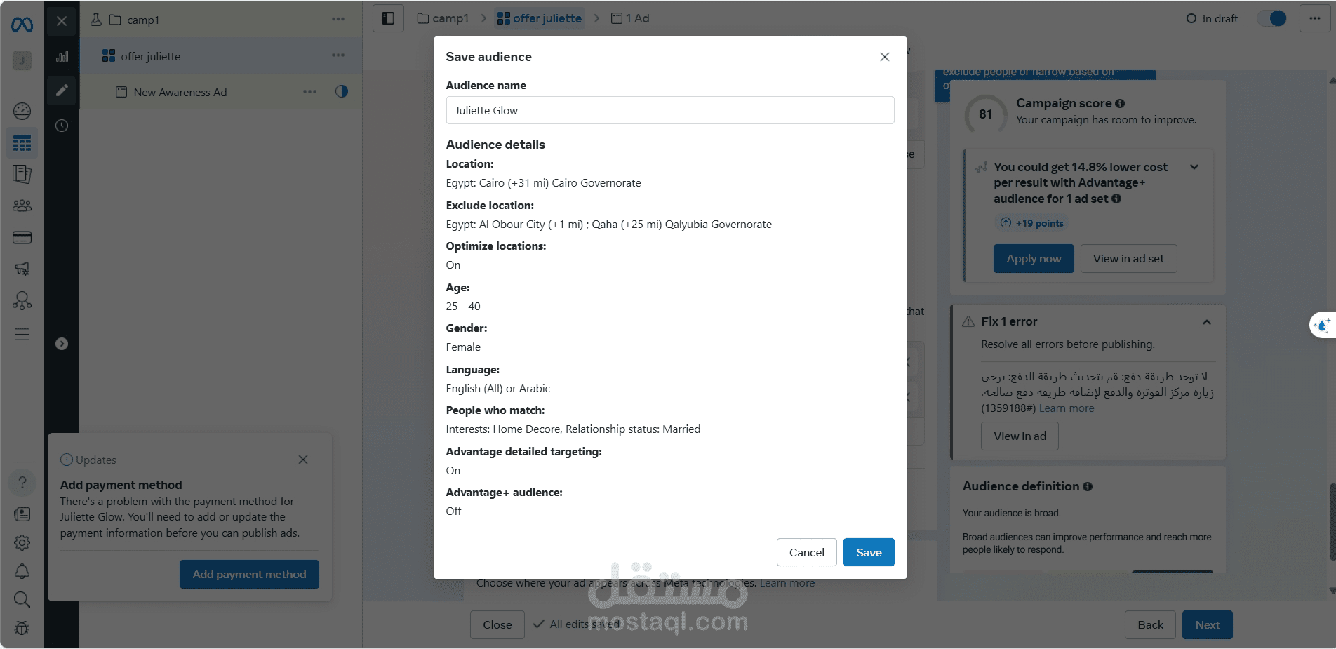 - استهداف دقيق للعملاء المحتملين حسب العمر، الموقع، الاهتمامات والسلوكيات.
