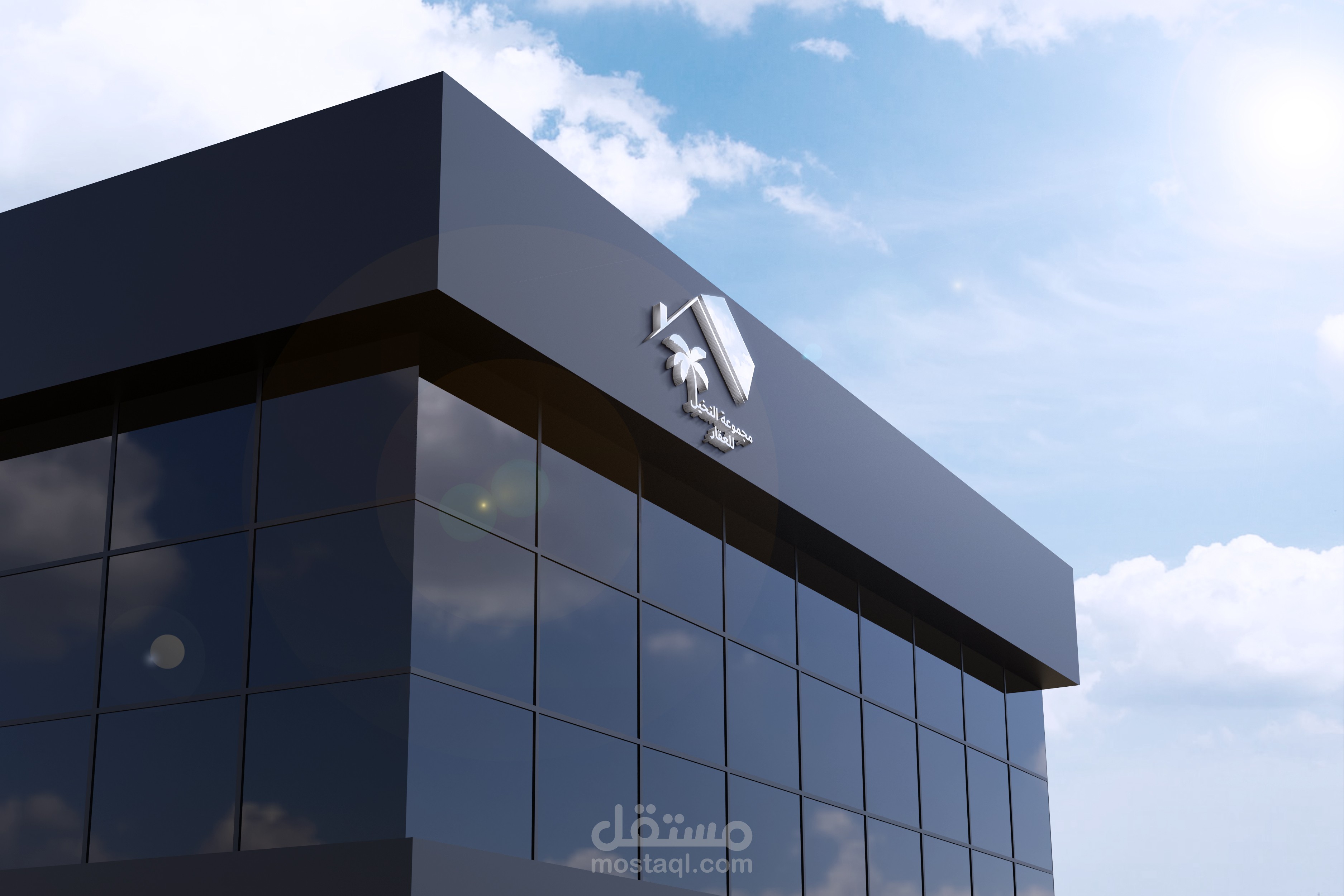 تم تصميم شعار احترافي لمجموعة النخيل للعقار، يرمز إلى الاستقرار والازدهار في مجال الوساطة والتطوير العقاري. يعكس الشعار عناصر بصرية توحي بالمنزل الآمن من خلال هيكل السقف، بينما تمثل النخلة الأصالة والنمو والاستثمار الناجح.