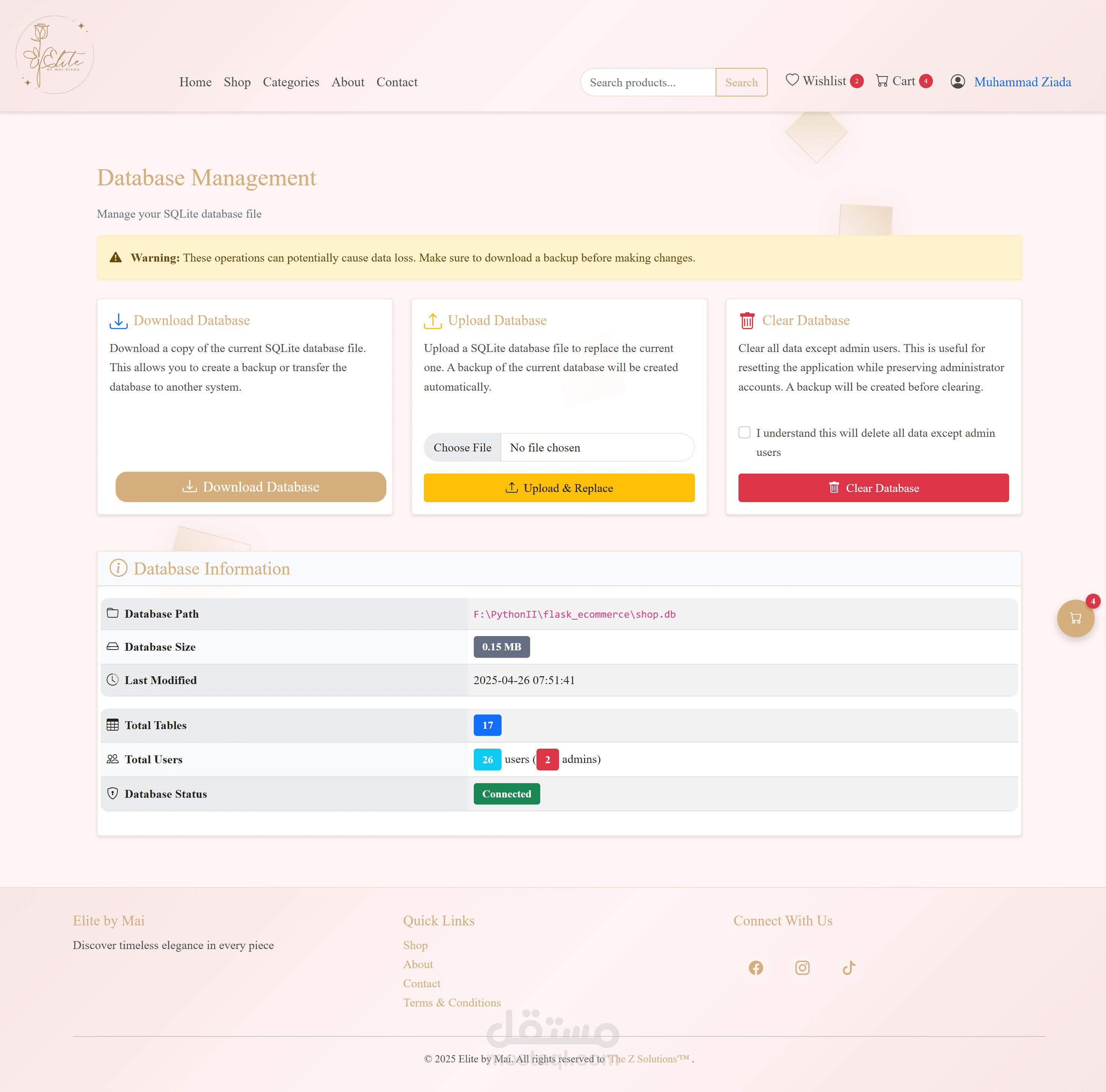 منصة تجارة إلكترونية متطورة متخصصة في مجوهرات النساء والحقائب الفاخرة وإكسسوارات الأزياء، مبنية بتقنية Flask وتتميز بتصميم حديث وأنيق.