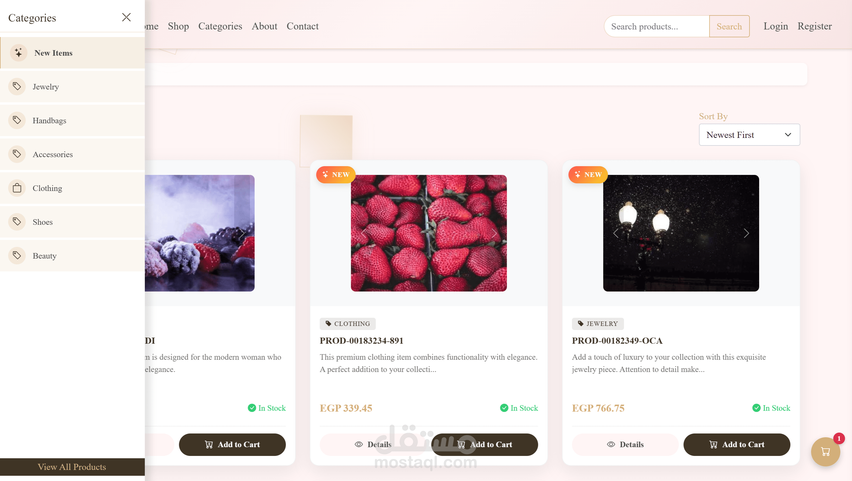 - وظيفة البحث عن المنتجات