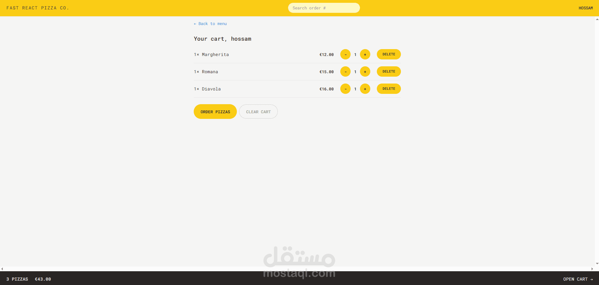 مشروع تطبيقي لتجربة طلب بيتزا حديثة وسريعة باستخدام React + Redux + TailwindCSS