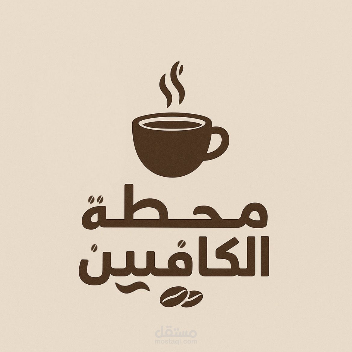 تصميم شعار محل قهوة كلاسيكي اسم المحل محطه الكافيين مع ادراج اسم المحل و كوب قهوة في الشعار