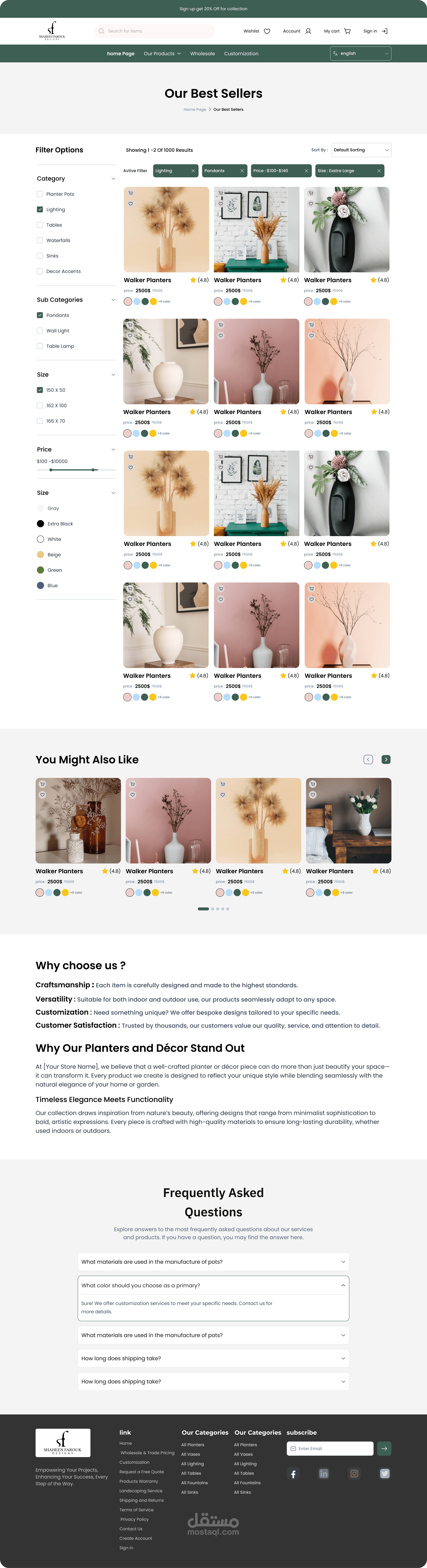 صفحة هبوط لمتجر الكثروني للخزفيات المنزلية مصمم باستخدام أداة figma ،حيث يمنحنا واجهة مستخدم جذابة وتجربة مستخدم سلسة