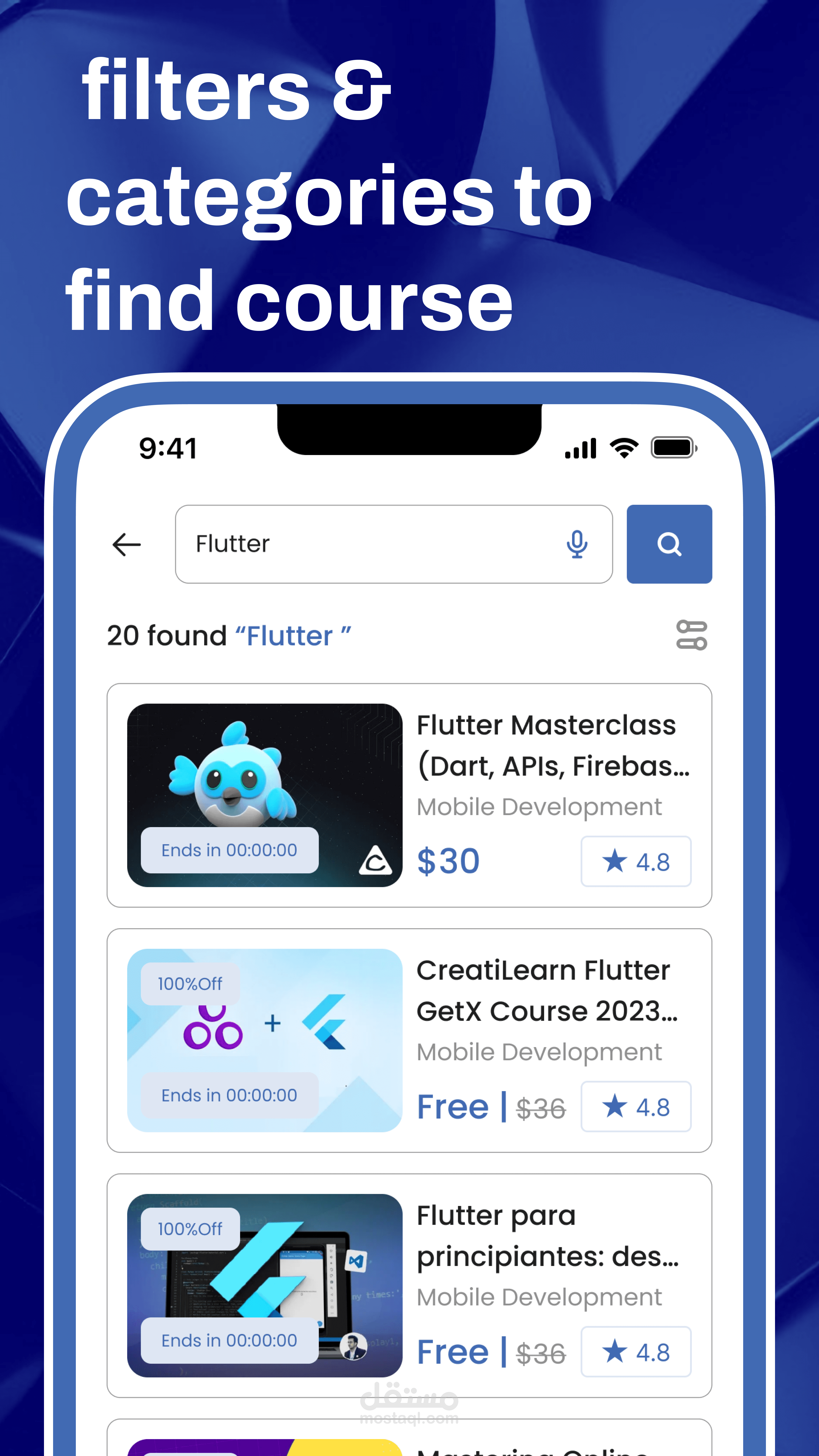 سهولة البحث: ابحث عن الدورات باستخدام الكلمات المفتاحية مثل (برمجة، تسويق، تصميم، إلخ).