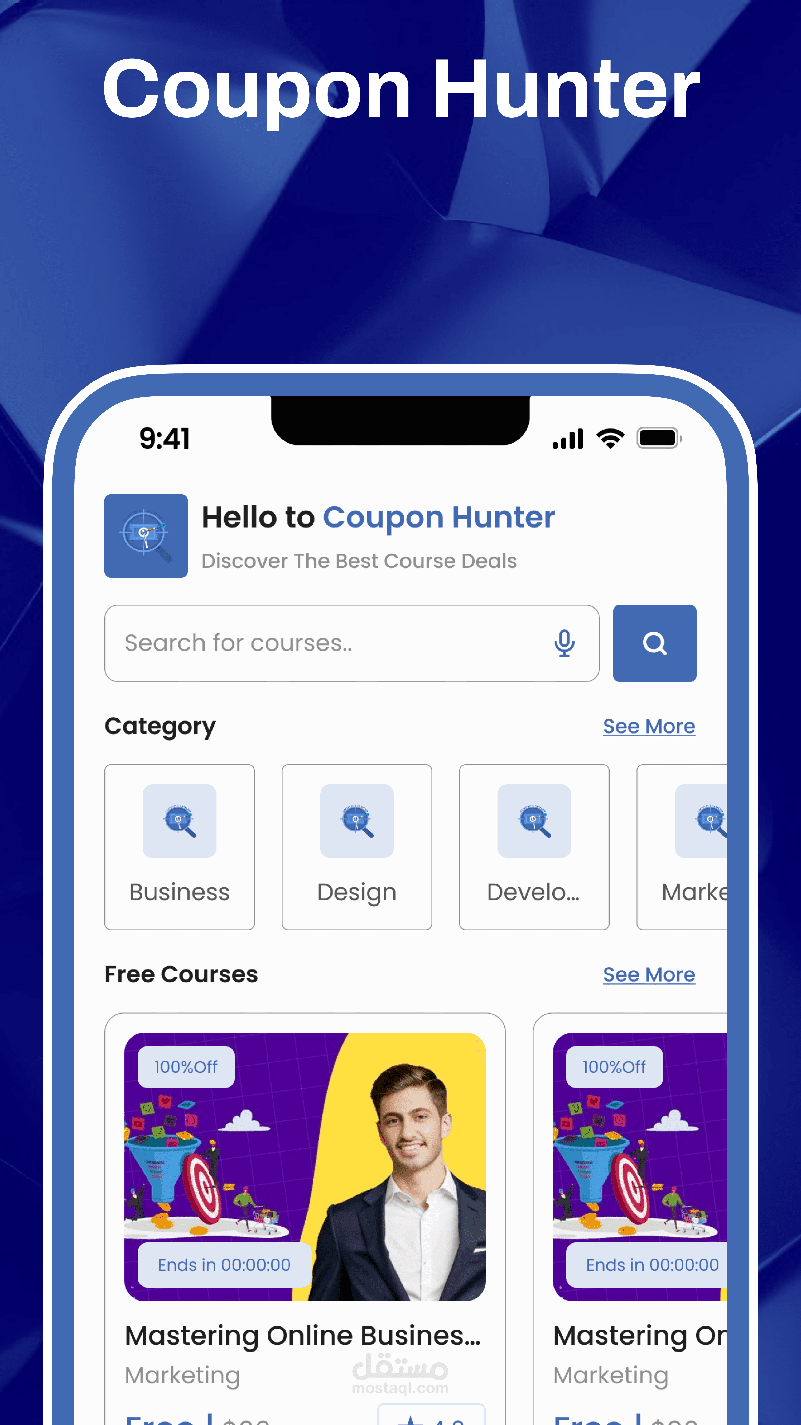 تطبيق Coupon Hunter يتيح لك الوصول إلى مئات الدورات المدفوعة مجانًا في مختلف المجالات مثل البرمجة، التسويق الرقمي، التصميم، تطوير المهارات الشخصية، والعديد من المهارات الأخرى، دون أي تكلفة!