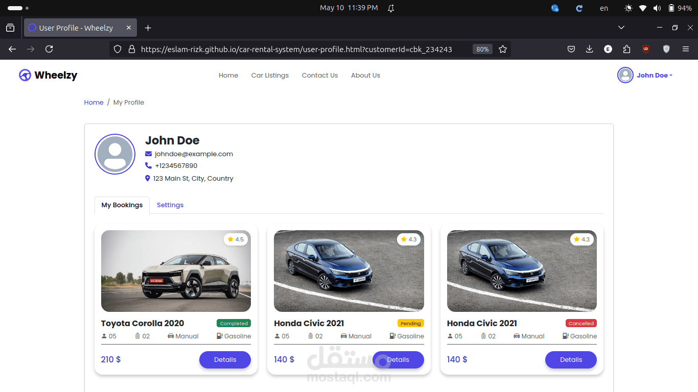نظام تأجير سيارات مصمم لعرض خدماتك ومركباتك بطريقة سلسة واحترافية. يتضمن النظام لوحة تحكم ذكية لإدارة السيارات والحجوزات وبيانات العملاء، بالإضافة إلى تحليلات فورية لمتابعة أداء العمل. يمكن للعملاء بسهولة استعراض السيارات المتاحة، إجراء الحجوزات، وإدارة سجل حجوزاتهم من خلال واجهة استخدام سهلة تضمن تجربة تأجير مريحة وفعالة.