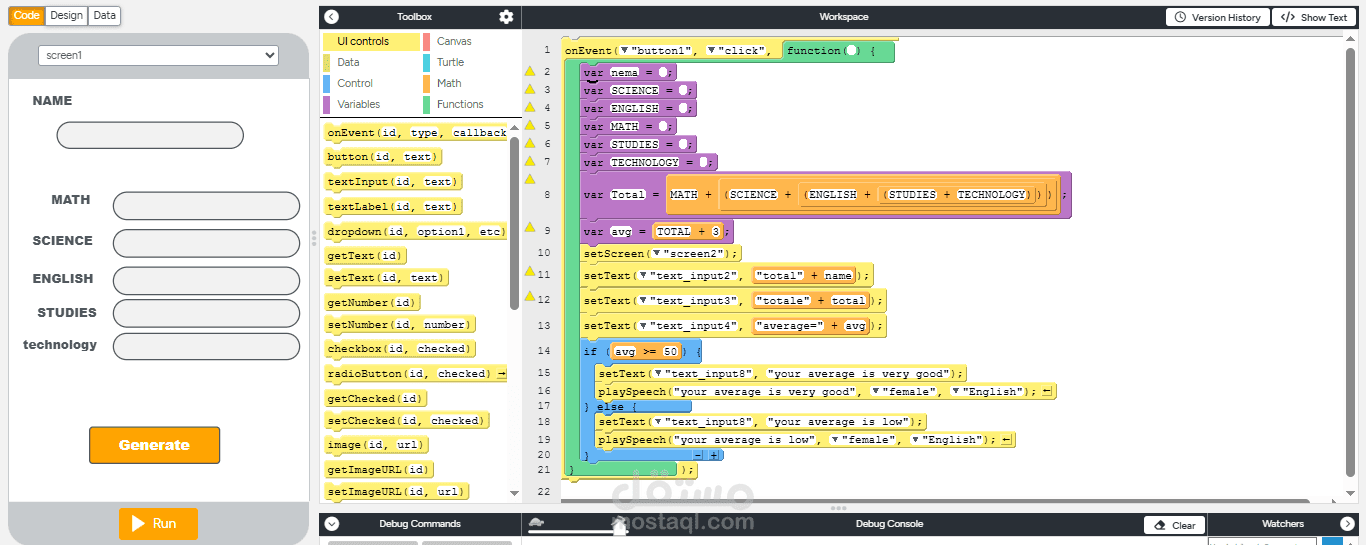 It is a program that organizes the grades of academic subjects. It gives you some academic subjects after you register your name and write your grades in the exam. It tells you your level according to the grades.