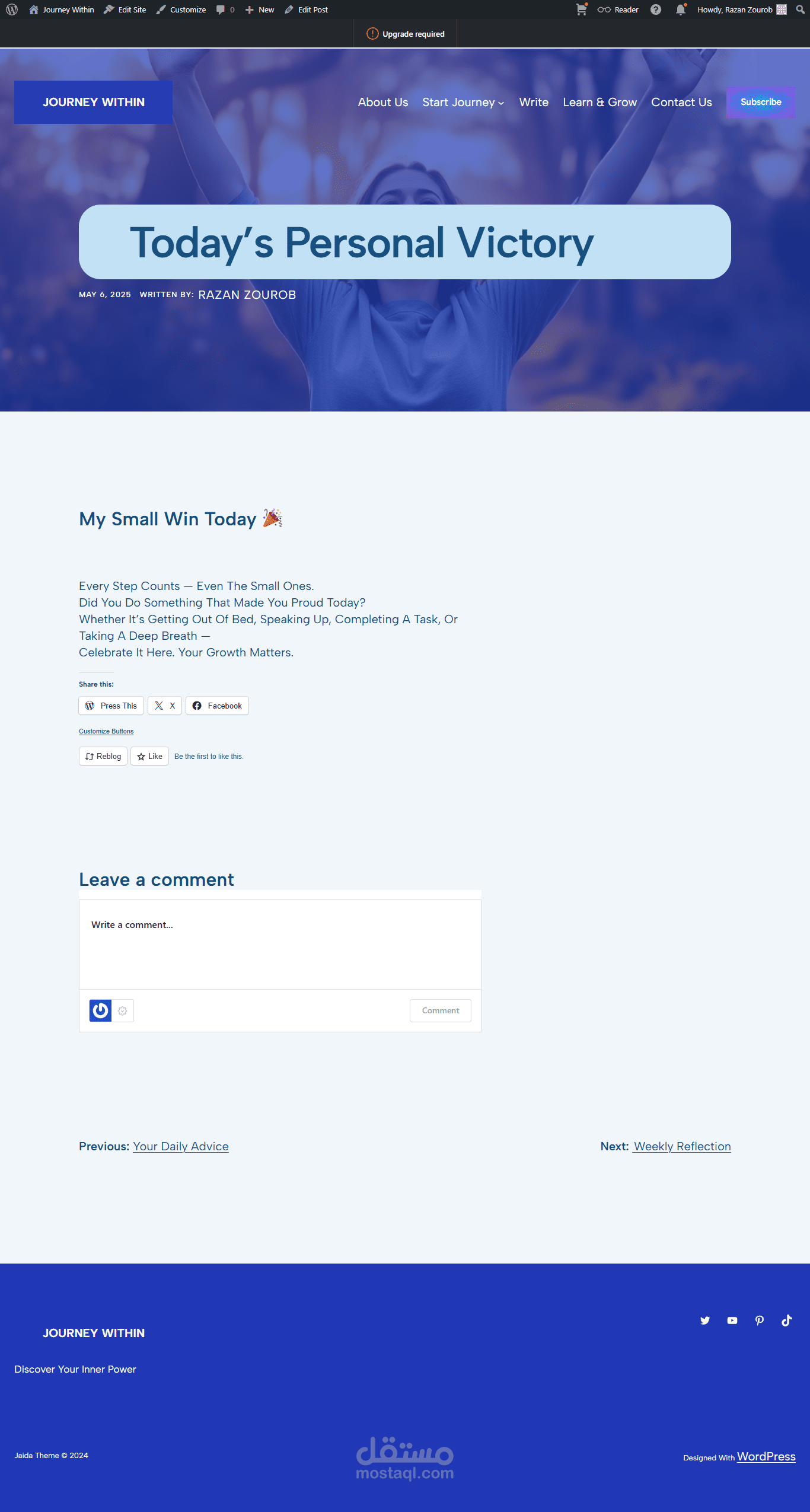 عملت على تصميم وتطوير هذا الموقع باستخدام WordPress، ليكون منصة تعريفية بمبادرة شخصية موجهة للتنمية الذاتية.
