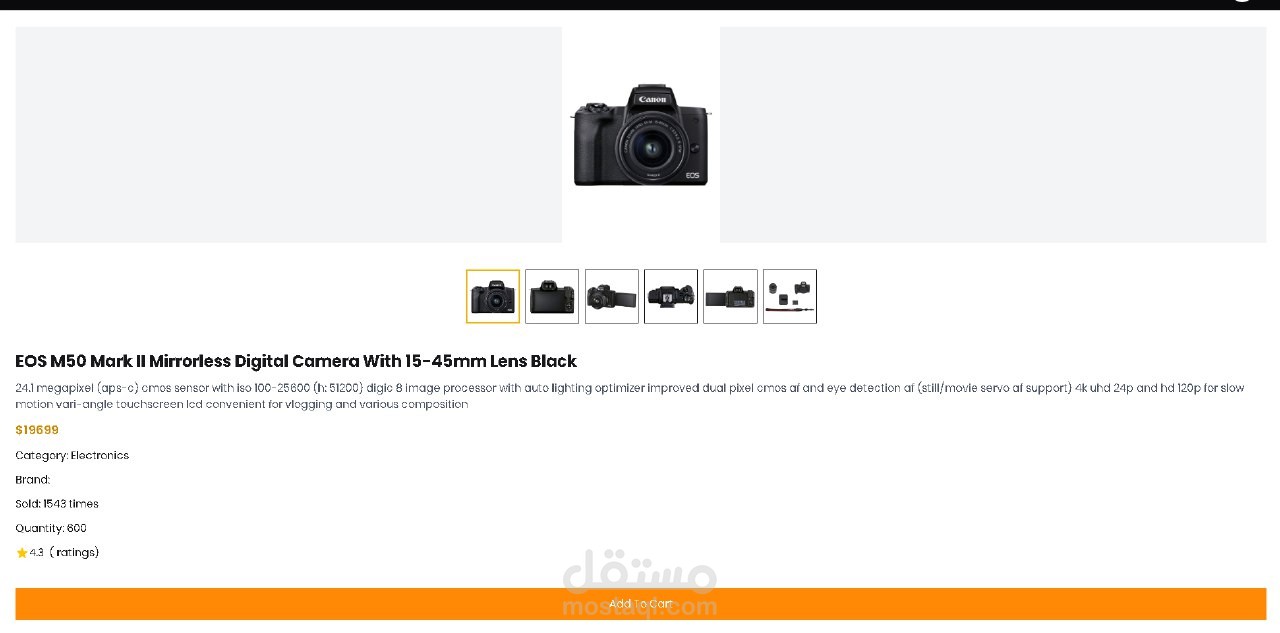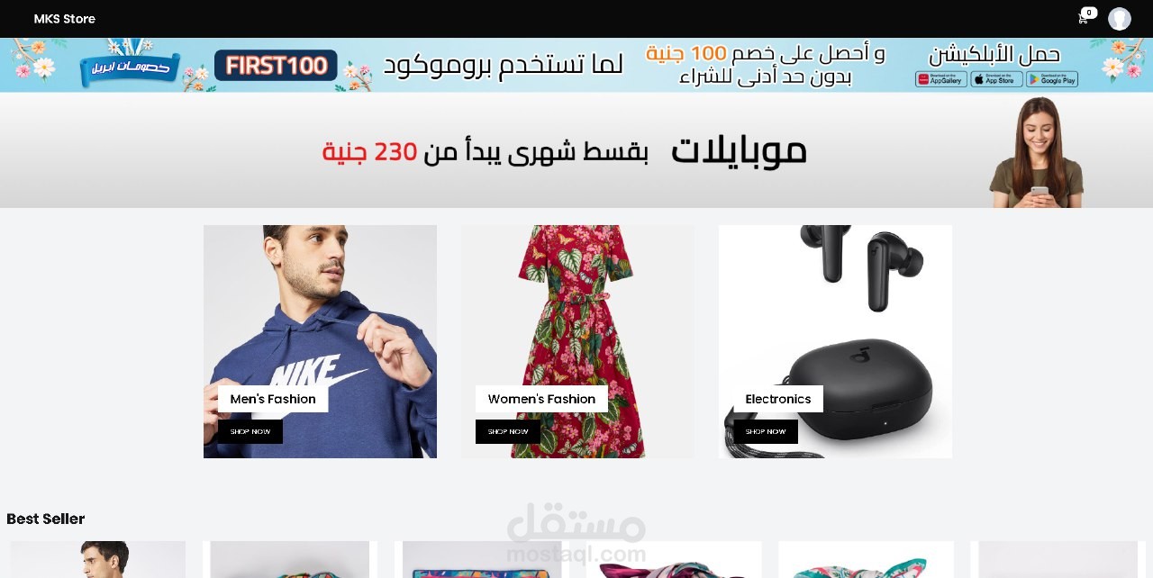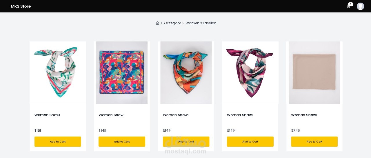 موقع متجر إلكتروني ذو تصميم جذاب تم فيه استخدام ميزة انشاء حساب وإضافة إلى العربة وإتمام الشراء