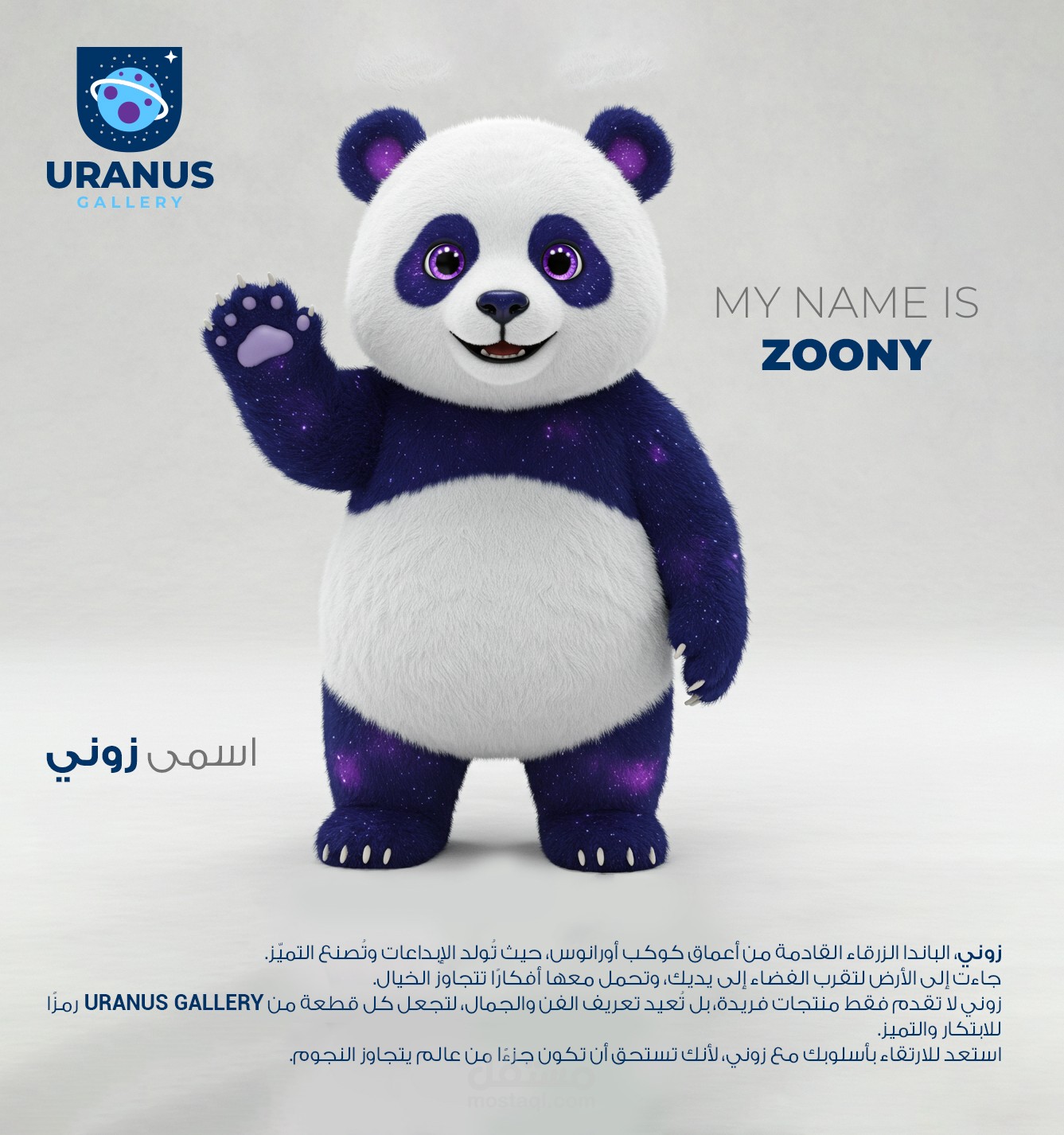 تطوير شخصية 3D أصلية ومميزة باسم زوني، لتعزيز التفاعل البصري وبناء ارتباط عاطفي مع الجمهور.