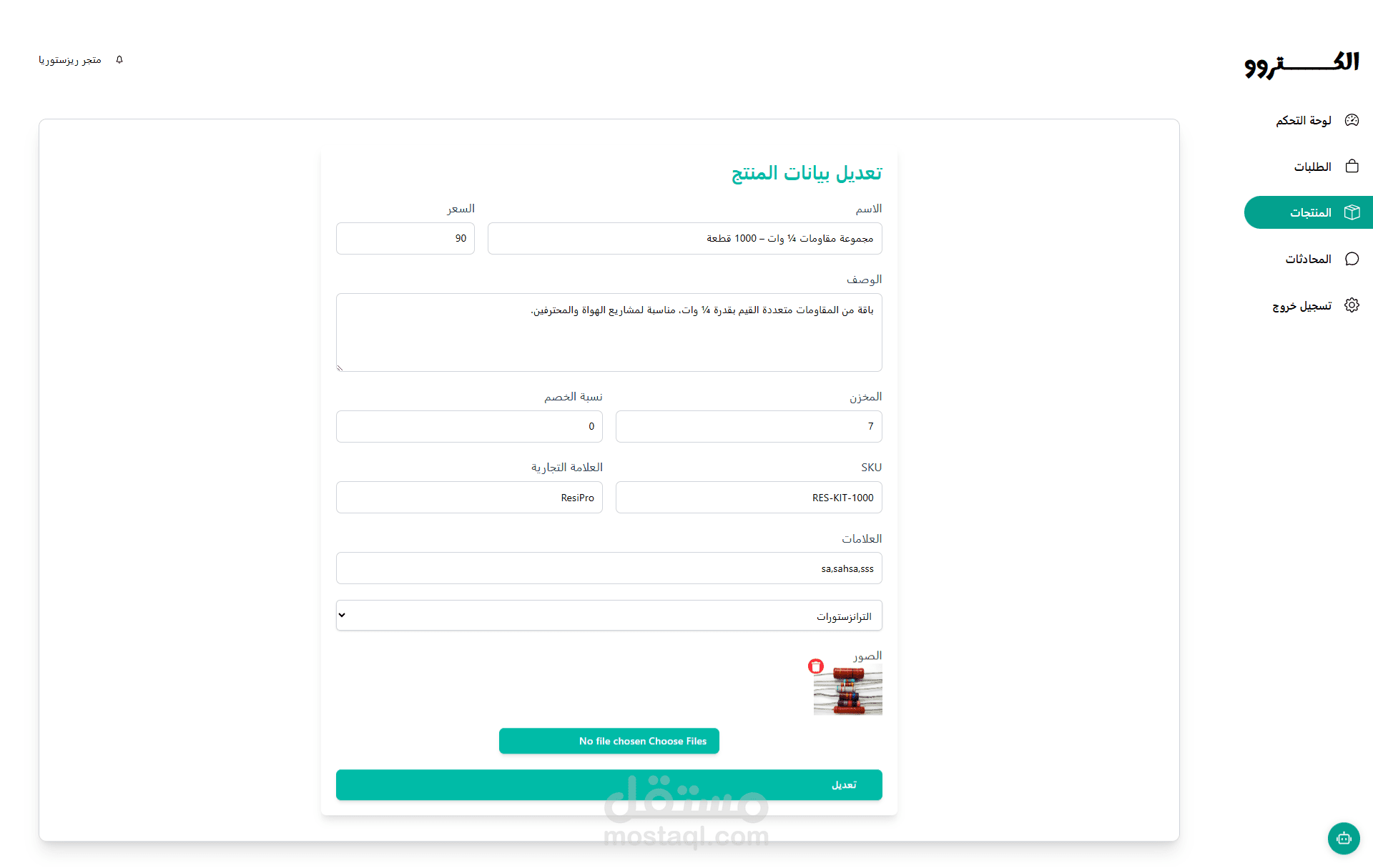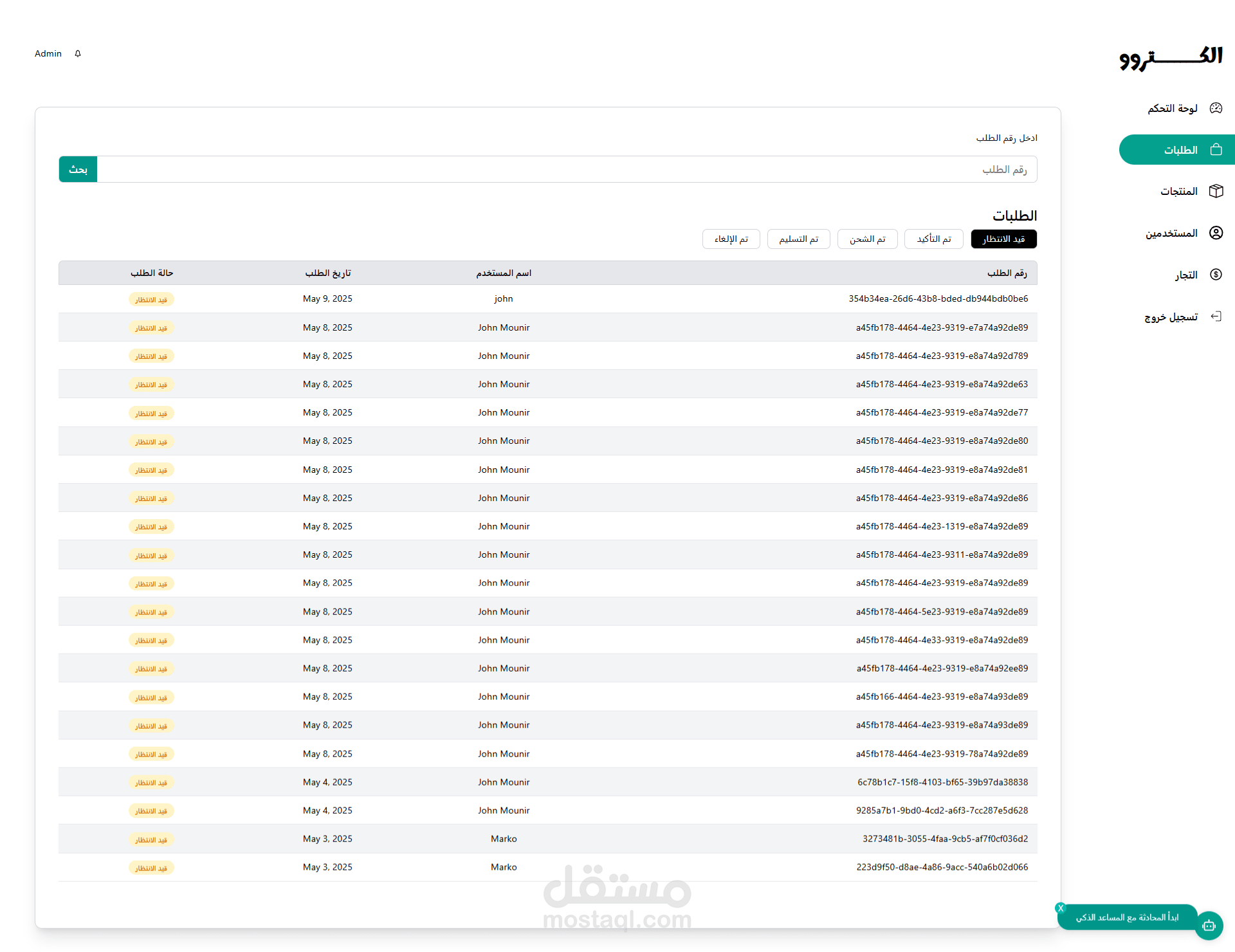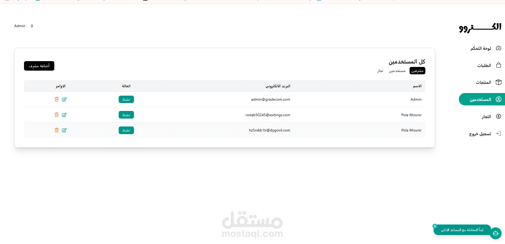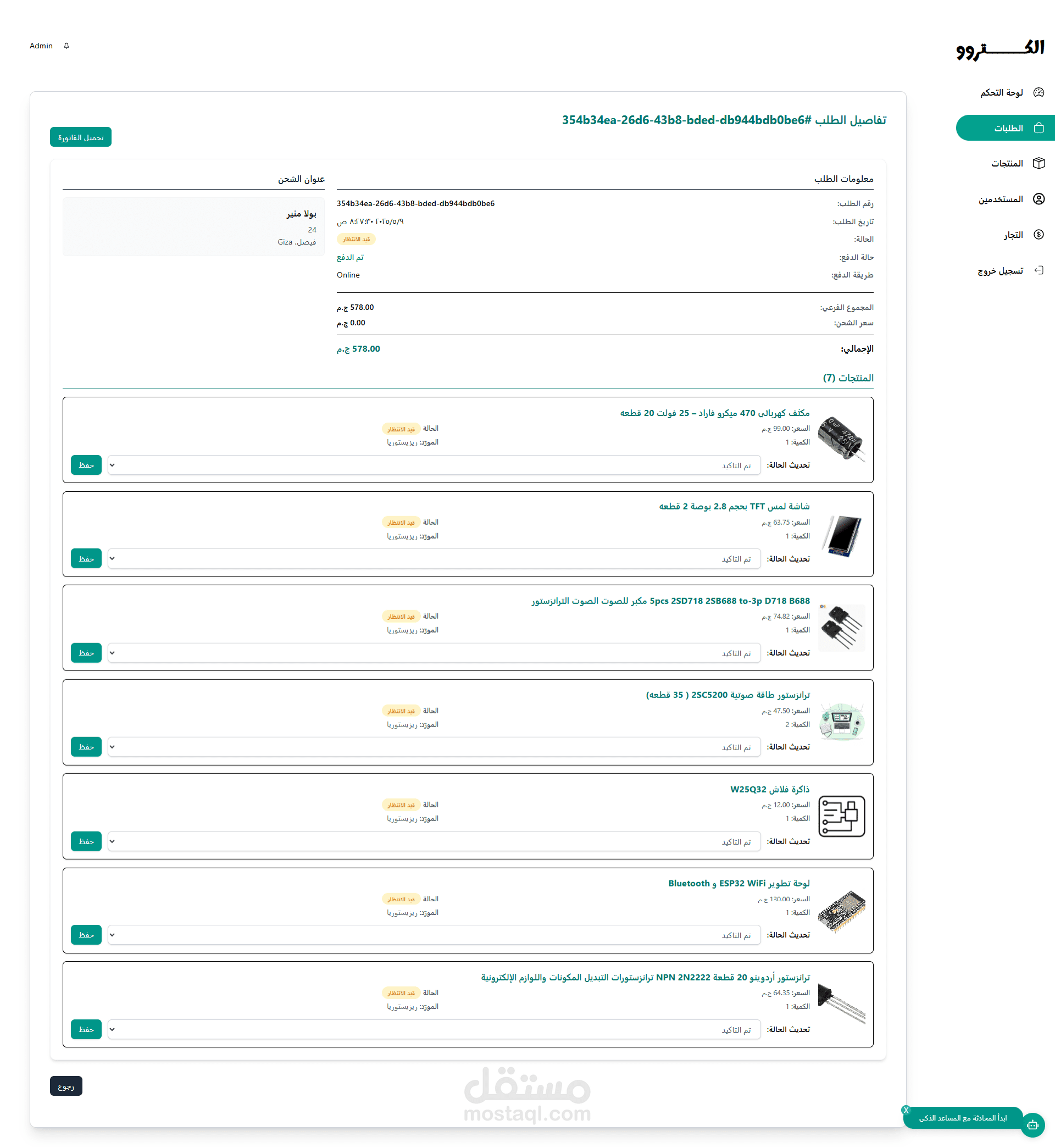 (e.g., transistors, diodes, screens, batteries) with multi-role access: admin, supplier, and