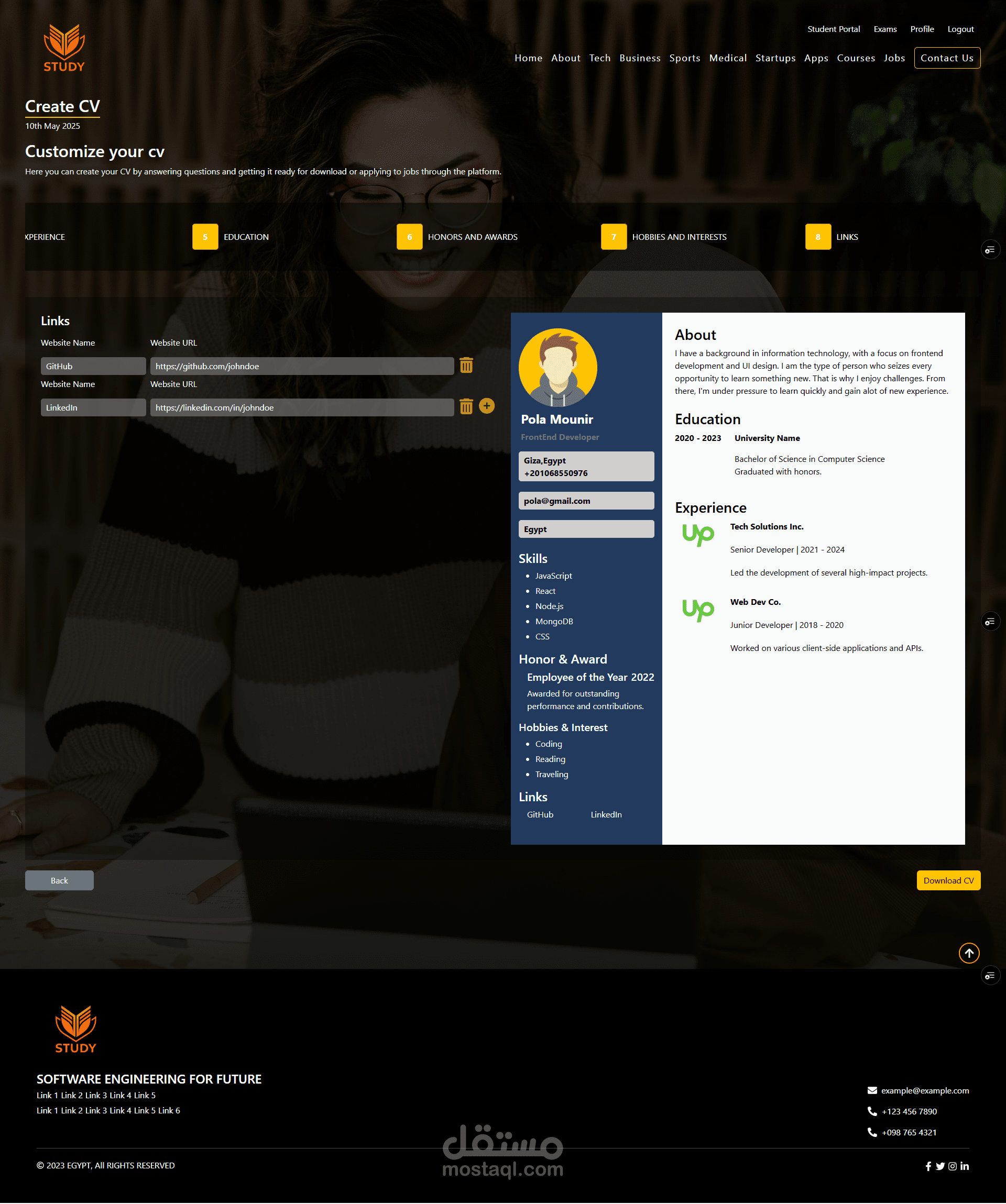 Developed a dynamic course platform with exam systems, CV builders, and user role-based