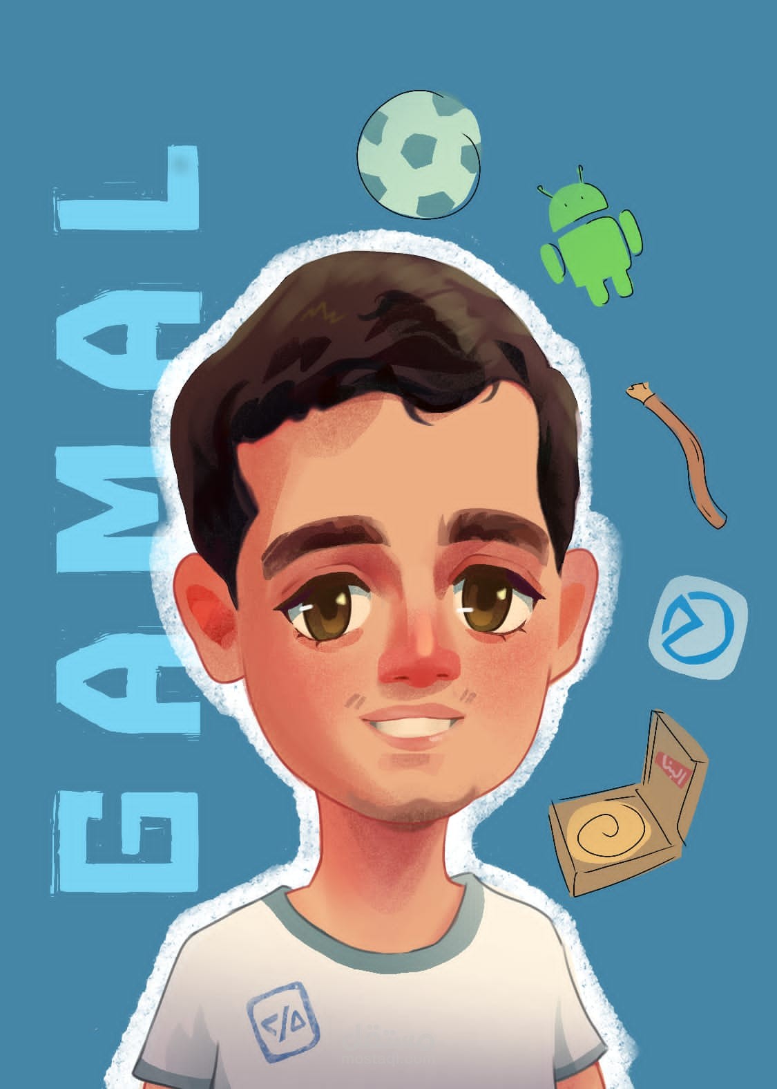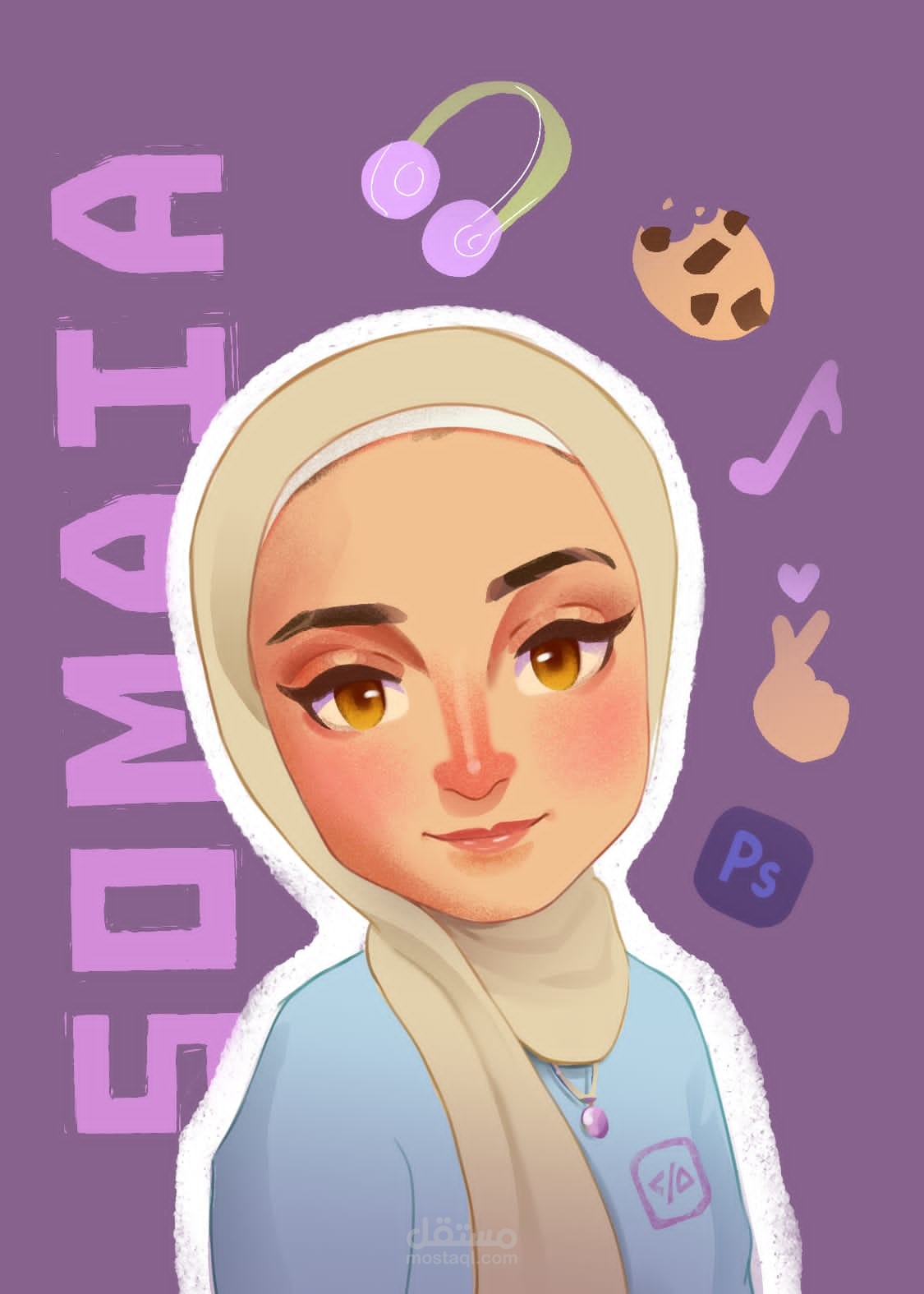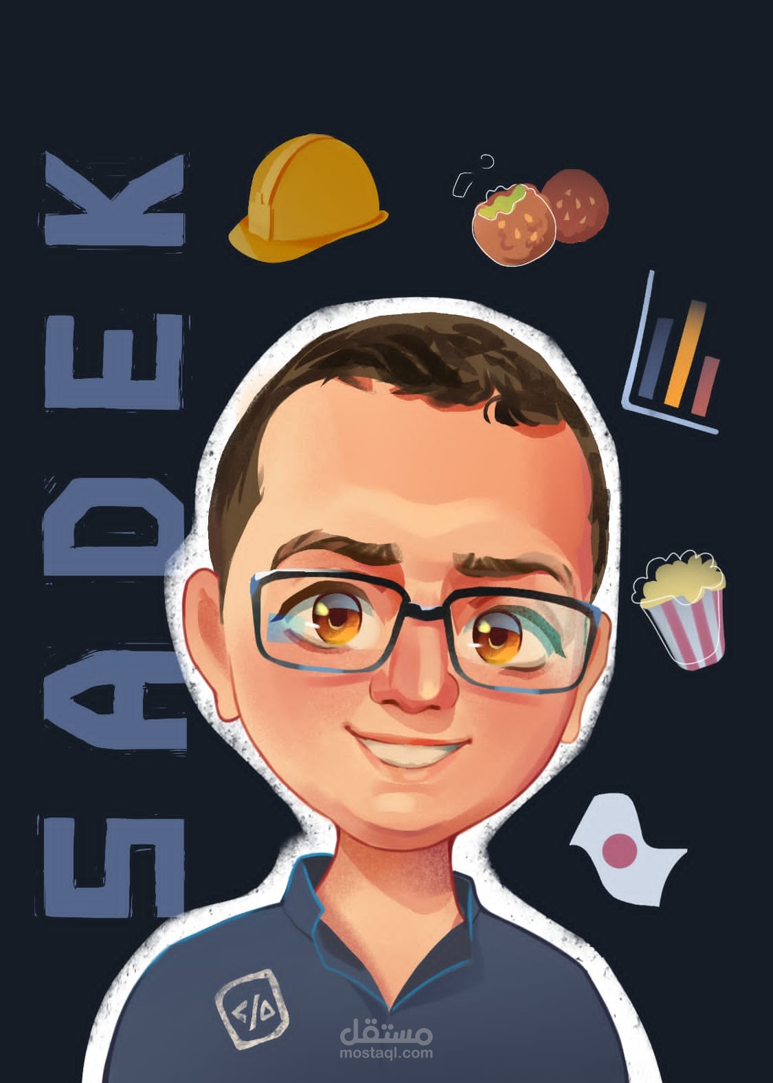 تم بفضل الله تصميم صور لموظفين في شركه مع icons تمثل الاشياء المفضله لكل موظف