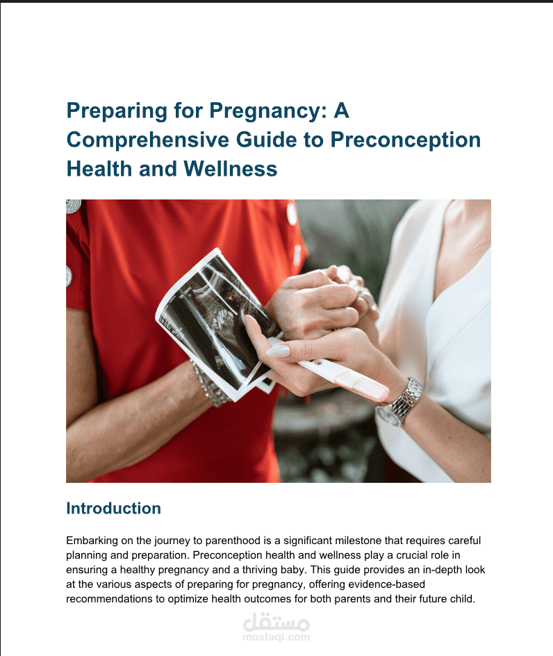 مقال شامل وعميق بعنوان Preparing for Pregnancy: A Comprehensive Guide to Preconception Health and Wellness، مكتوب بأسلوب احترافي وسلس، ويقدّم دليلاً متكاملاً مبنيًا على مصادر طبية موثوقة للأزواج الذين يخططون للحمل.