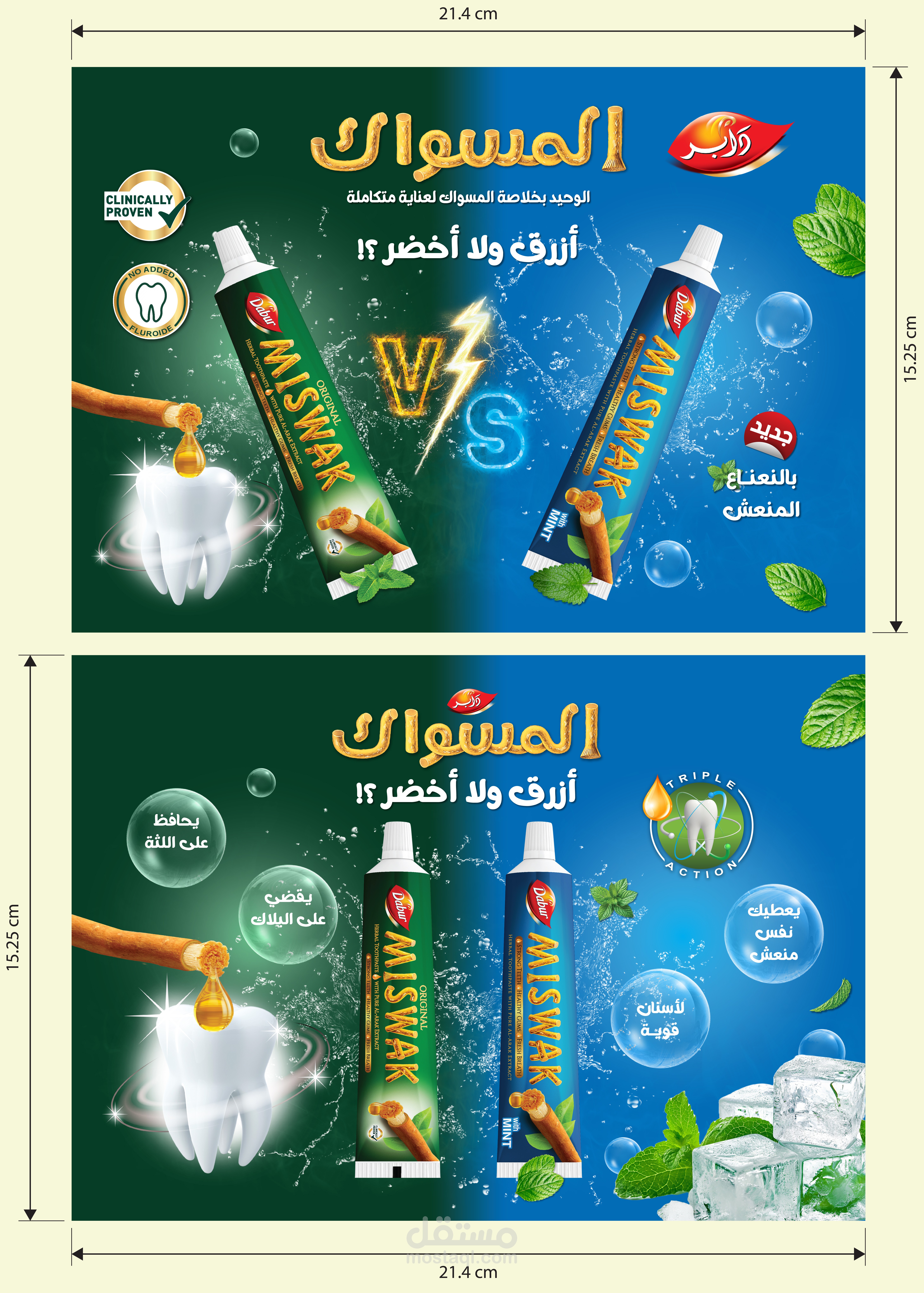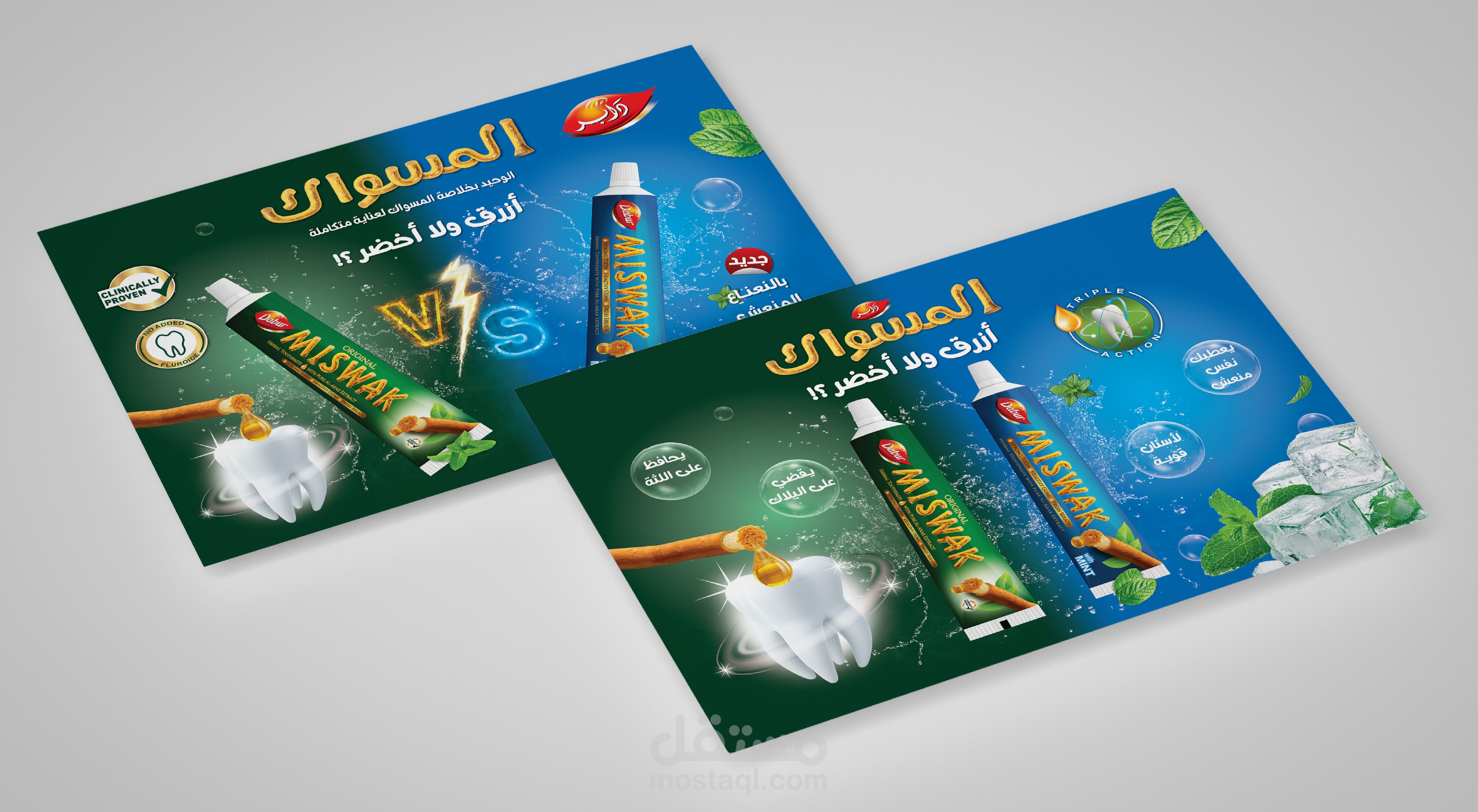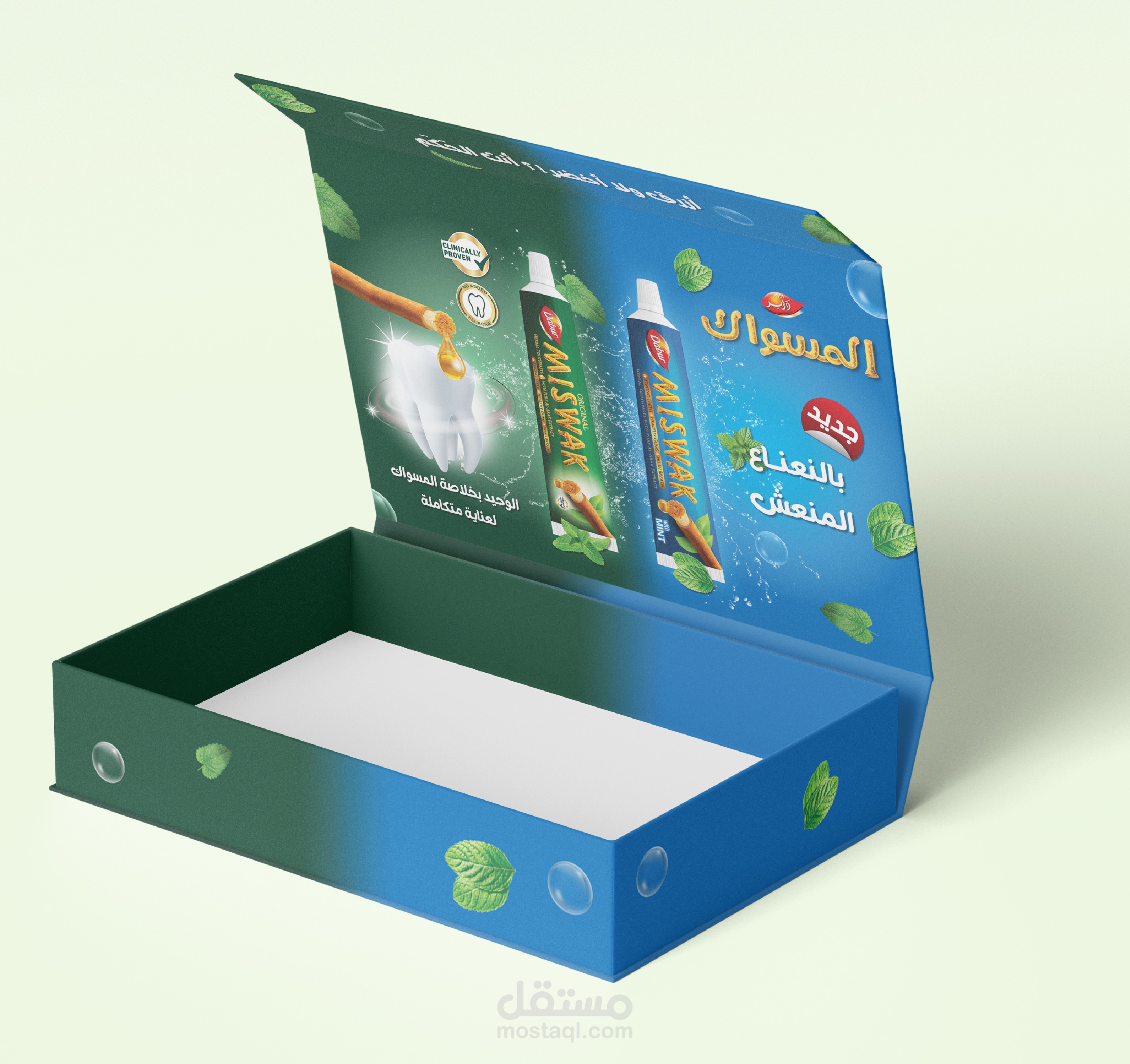تستضيف دابر، الاسم الرائد في مجال العناية الشخصية، فعالية في مصر لعرض أحدث منتجاتها، بما في ذلك معجون أسنان منعش ومعجون أسنان بنكهة النعناع. الهدف هو تصميم حزمة ترويجية جذابة وجذابة بصريًا تتضمن علبة منتجات، ومنشورات، ولافتات قابلة للطي للفعالية.
