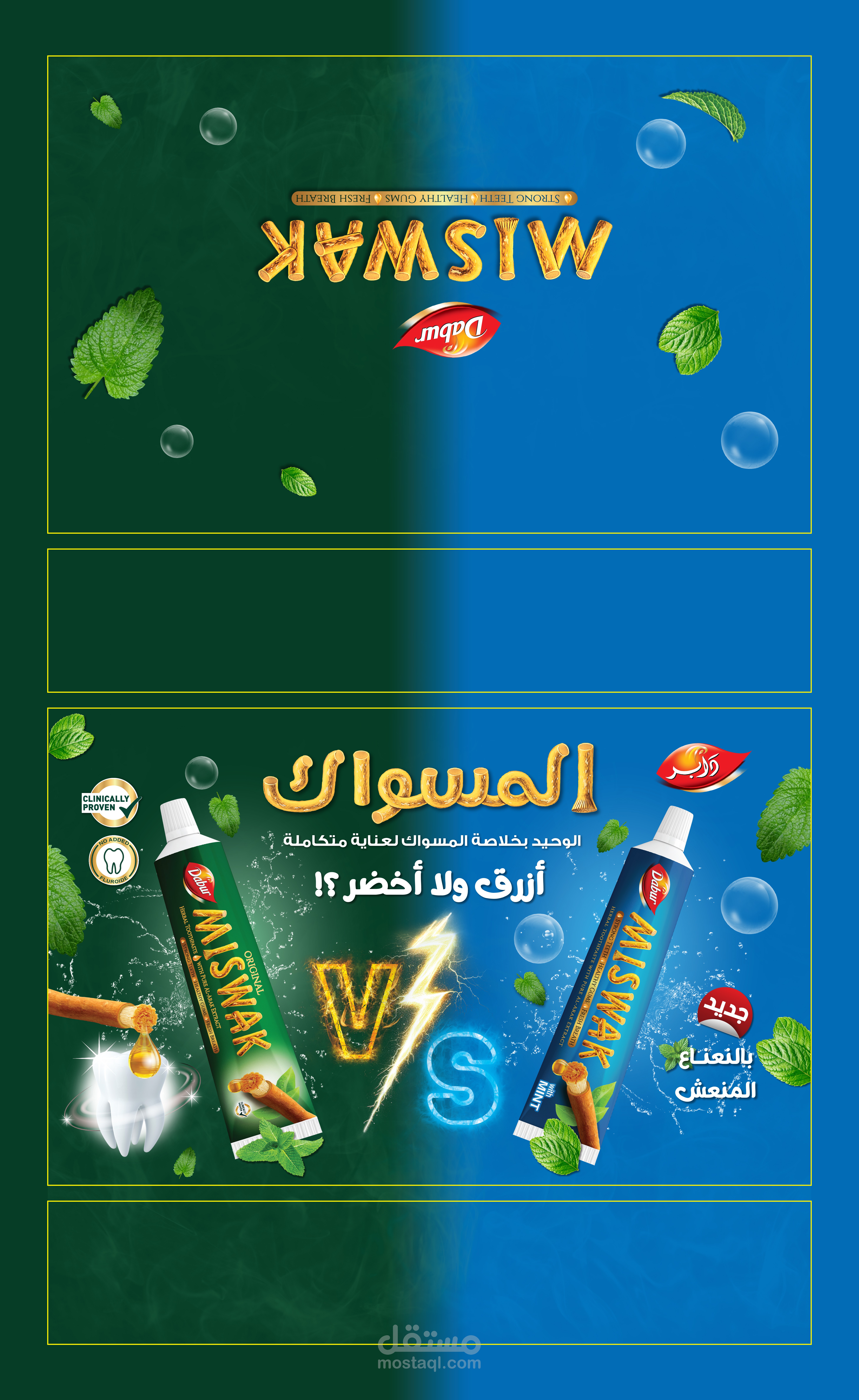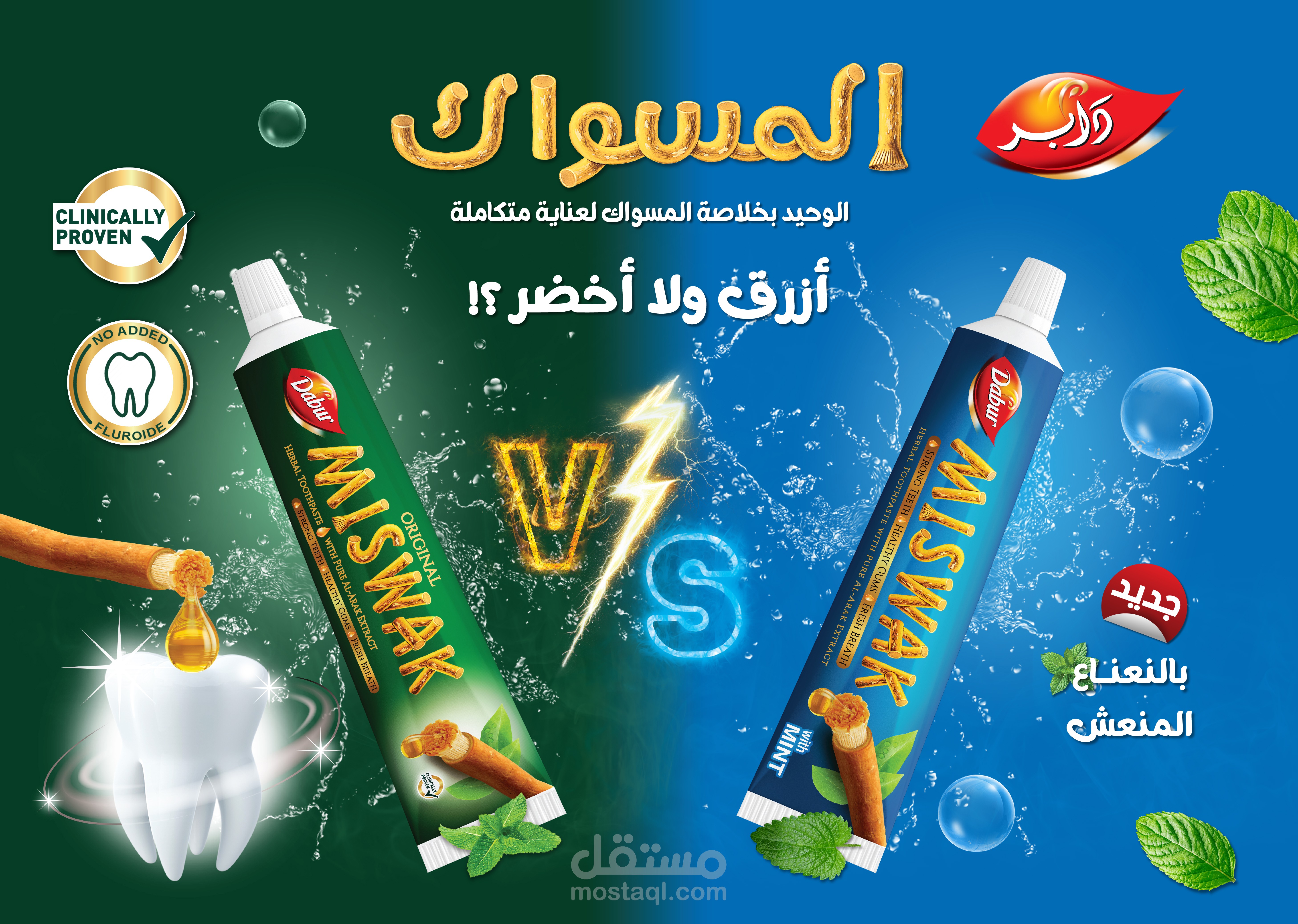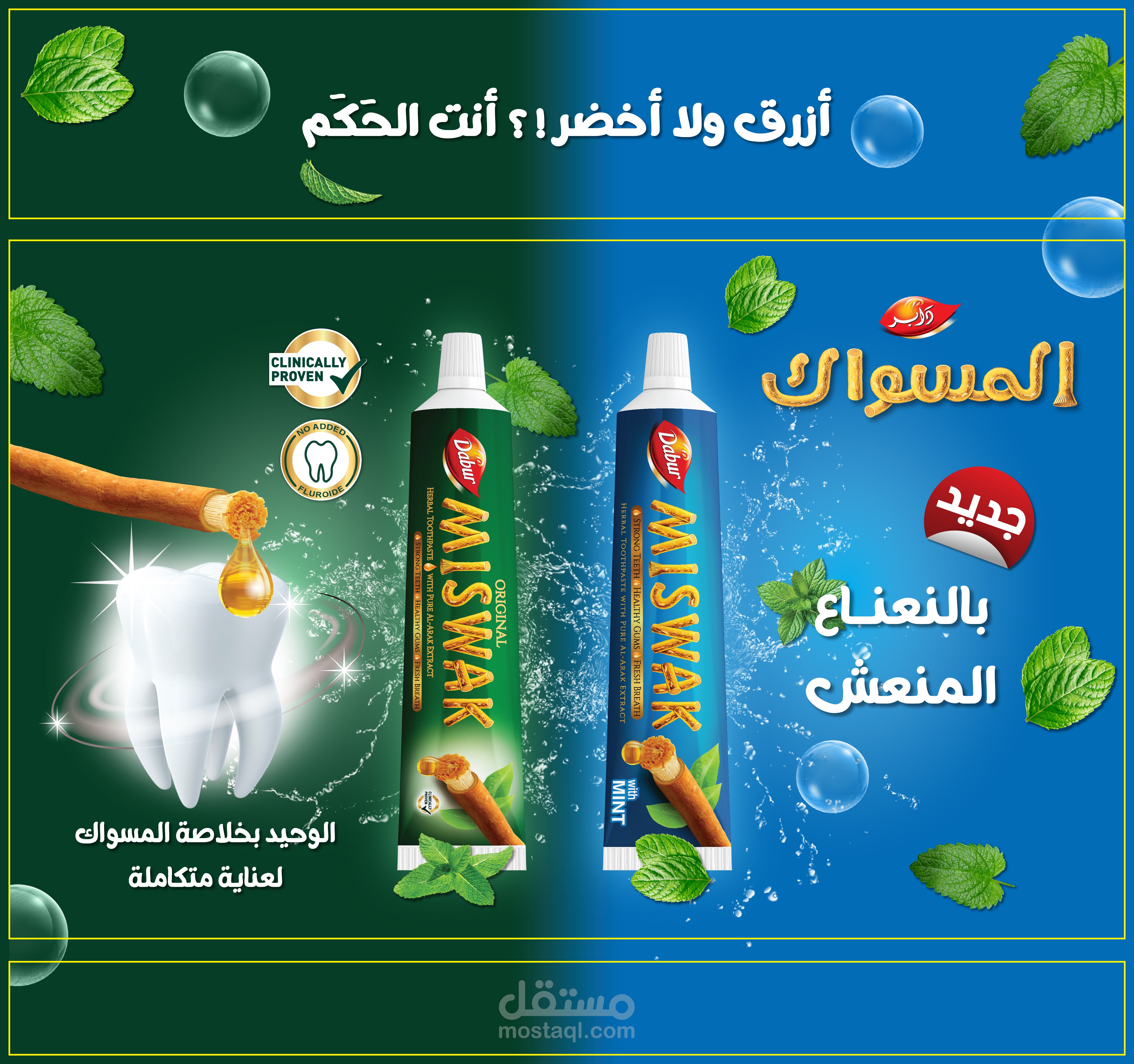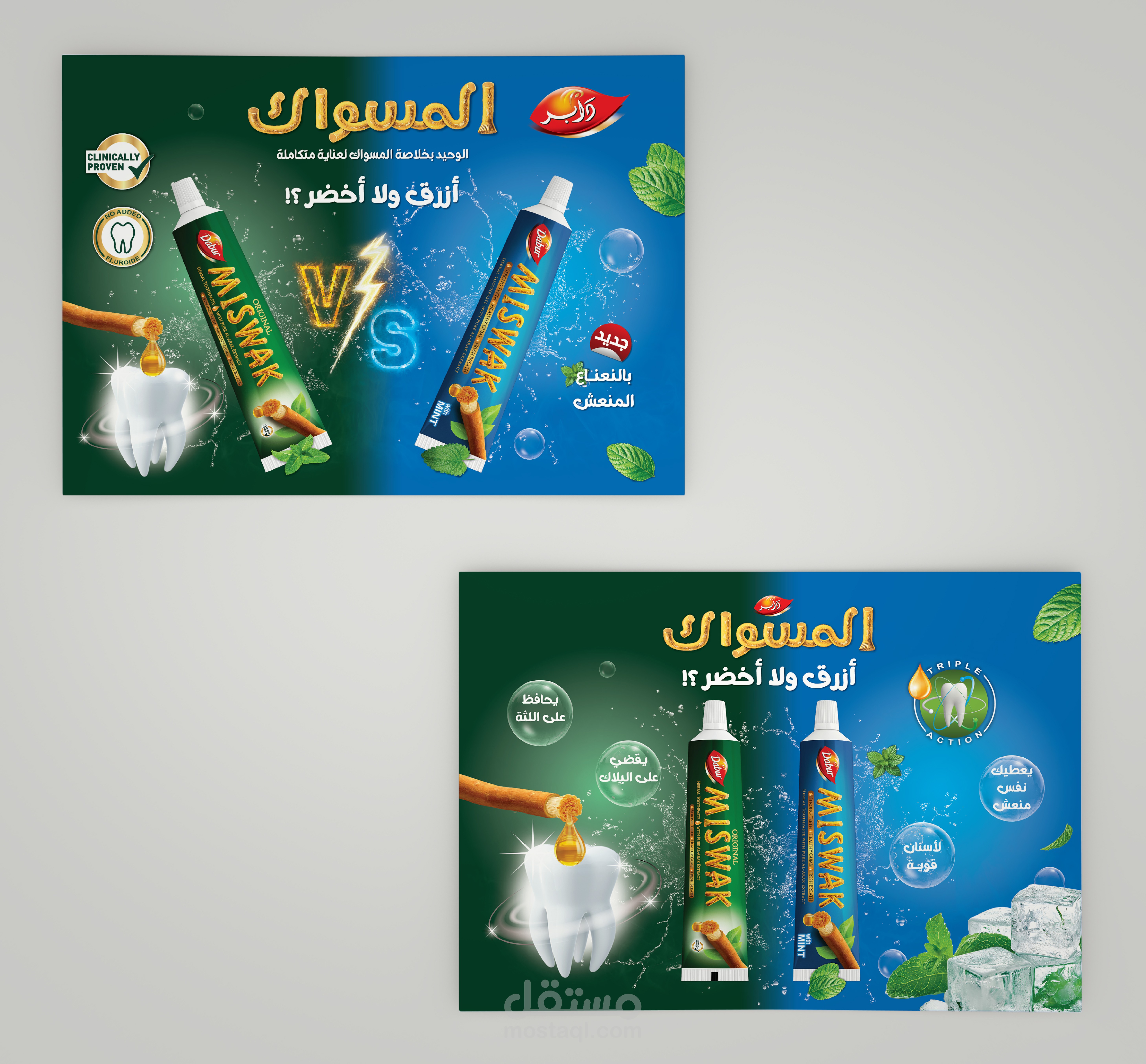 تستضيف دابر، الاسم الرائد في مجال العناية الشخصية، فعالية في مصر لعرض أحدث منتجاتها، بما في ذلك معجون أسنان منعش ومعجون أسنان بنكهة النعناع. الهدف هو تصميم حزمة ترويجية جذابة وجذابة بصريًا تتضمن علبة منتجات، ومنشورات، ولافتات قابلة للطي للفعالية.