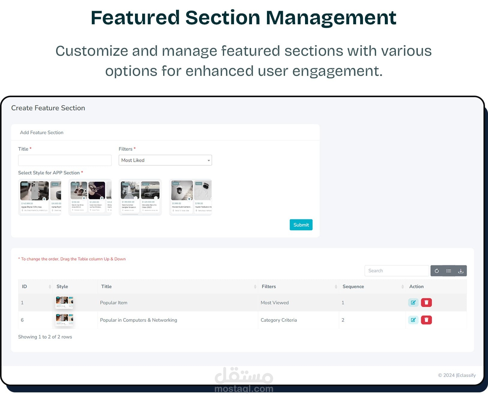 قم بتخصيص الأقسام المميزة وإدارتها باستخدام خيارات متنوعة لتعزيز تفاعل المستخدم.